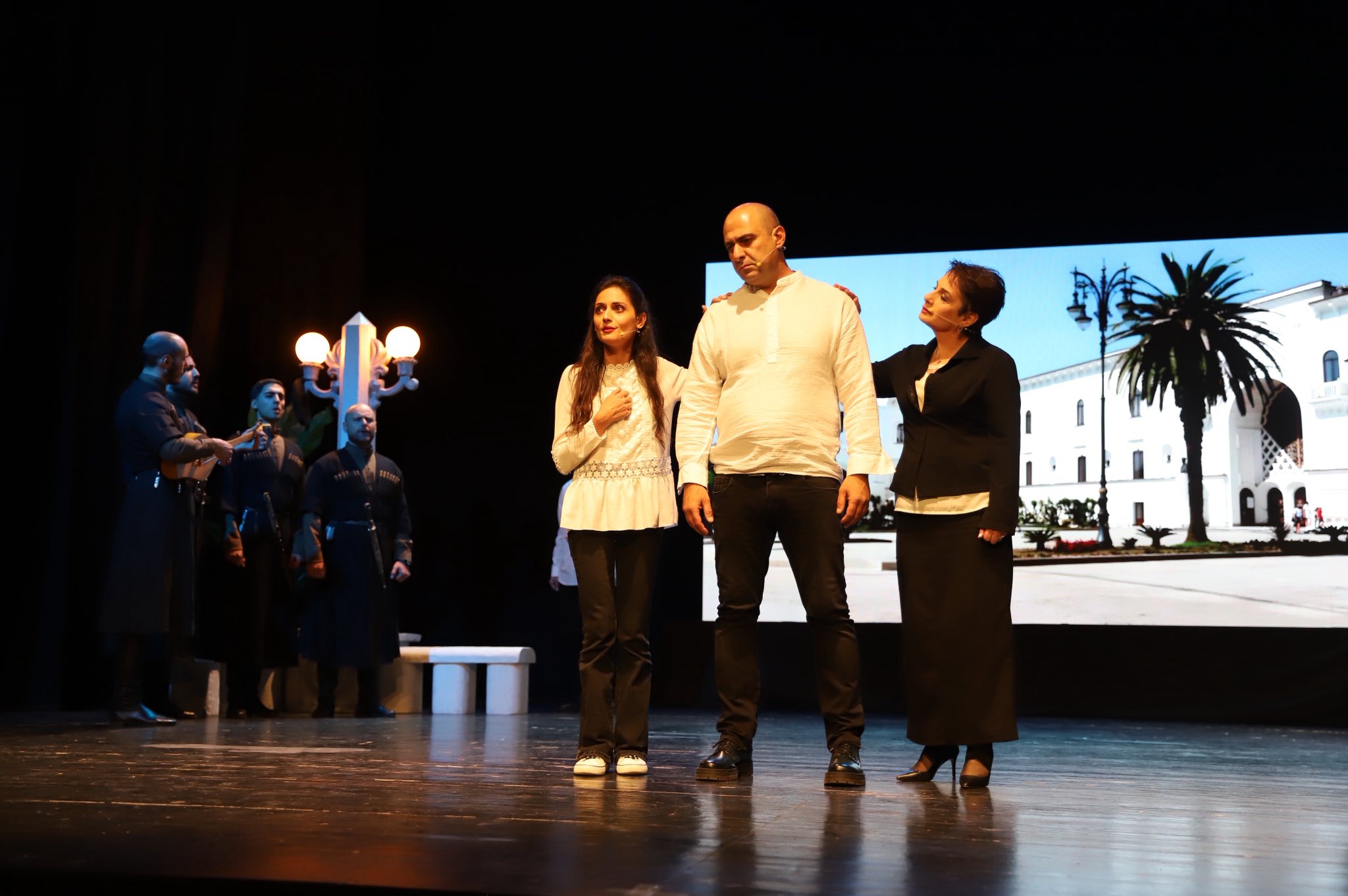 თეატრალურ წარმოდგენას აფხაზეთის ავტონომიური რესპუბლიკის უმაღლესი საბჭოს თავმჯდომარე ჯემალ გამახარია, სამხრეთ ოსეთის დროებითი ადმინისტრაციის ხელმძღვანელი თამაზ ბესტაევი, თეატრალური კინო და სახვითი ხელოვნების სამმართველოს უფროსი ნუცა კობაიძე, აფხაზეთის მთავრობის წევრები, უმაღლესი საბჭოს დეპუტატები და კულტურის სფეროს წარმომადგენლები ესწრებოდნენ.