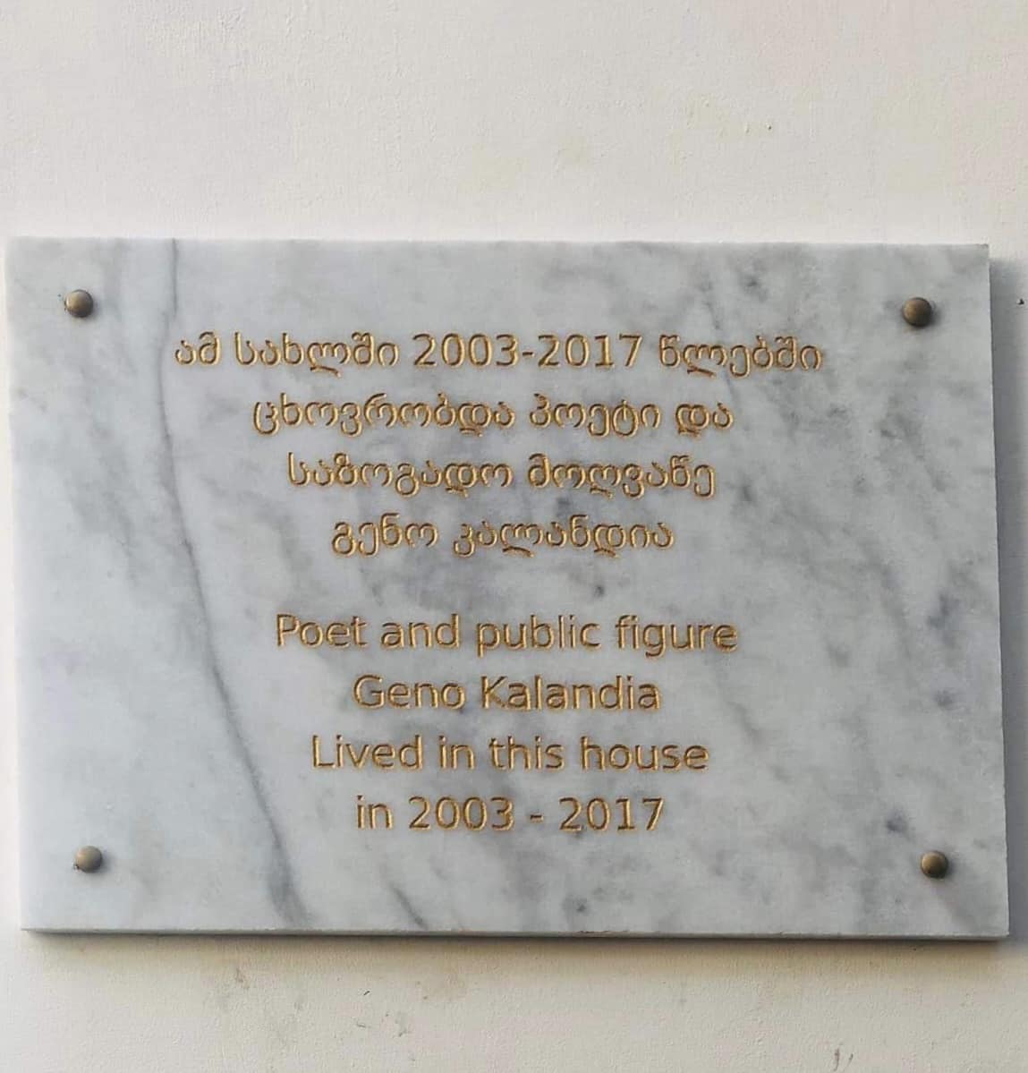 გამოჩენილი ქართველი პოეტისა და საზოგადო მოღვაწის, შოთა რუსთაველის, საქართველოს სახელმწიფო, ილია ჭავჭავაძისა და გიორგი შარვაშიძის პრემიების ლაურეატის გენო კალანდიას საცხოვრებელი სახლის (მეტეხის ქ. 16) ფასადზე, ქ. თბილისის საკრებულოს ინიციატივითა და ისნის რაიონის გამგეობის ორგანიზებით, მისი მემორიალური დაფა გაიხსნა.