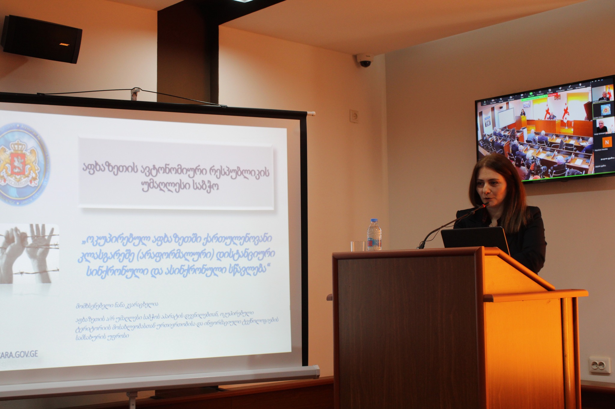 პლენარულ სხდომაზე, ასევე, აფხაზეთის ავტონომიური რესპუბლიკის უმაღლეს საბჭოში მიმდინარე პროექტის „ოკუპირებული აფხაზეთის ტერიტორიაზე - ქართულენოვანი დისტანციური სინქრონული და ასინქრონული სწავლებები“ შესახებ პრეზენტაცია გაიმართა.