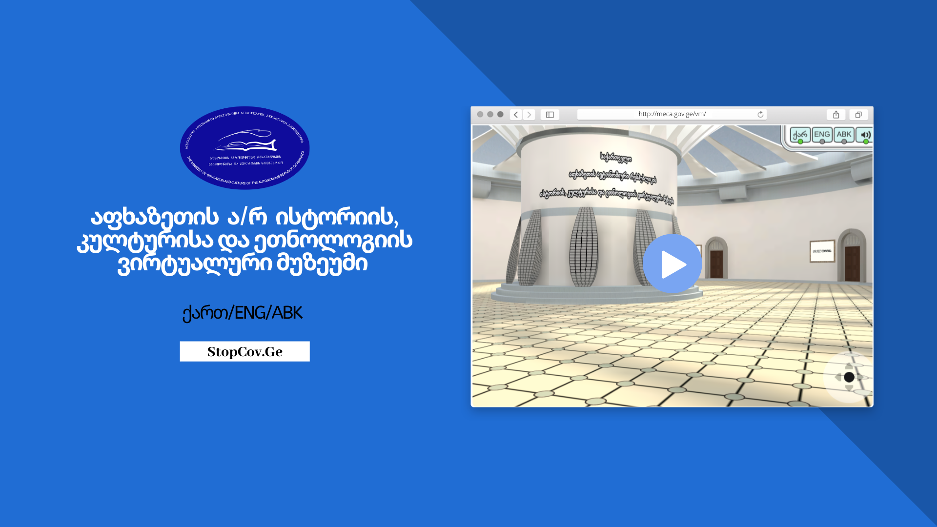 კორონავირუსთან დაკავშირებით მოქმედი სამთავრობო უწყებათაშორისი საკოორდინაციო საბჭოს საპრევენციო ღონისძიებების ფარგლებში მიღებული გადაწყვეტილებების და რეკომენდაციების შესაბამისად, აფხაზეთის ავტონომიური რესპუბლიკის განათლებისა და კულტურის სამინისტროც გირჩევთ, დარჩეთ სახლში და სხვა ონლაინმუზეუმებთან ერთად დაათვალიეროთ „აფხაზეთის ავტონომიური რესპუბლიკის ისტორიის, კულტურისა და ეთნოლოგიის ვირტუალური მუზეუმი“. ონლაინ-მუზეუმი რამდენიმე წლის წინათ აფხაზეთის ა/რ განათლებისა და კულტურის სამინისტრომ აფხაზეთის ავტონომიური რესპუბლიკის მთავრობის მხარდაჭერით შექმნა.