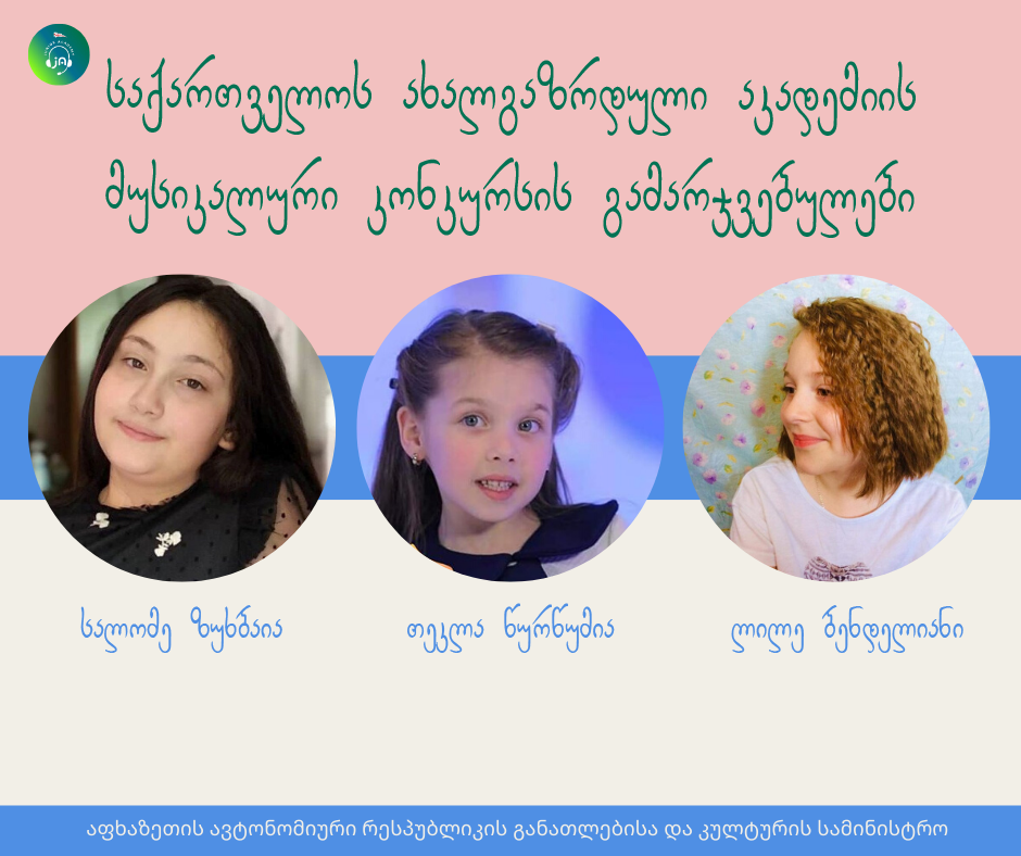 აფხაზეთის ავტონომიური რესპუბლიკის განათლებისა და კულტურის სამინისტრო აფხაზეთის მოზარდებს გამარჯვებას ულოცავს და წარმატებებს უსურვებს.