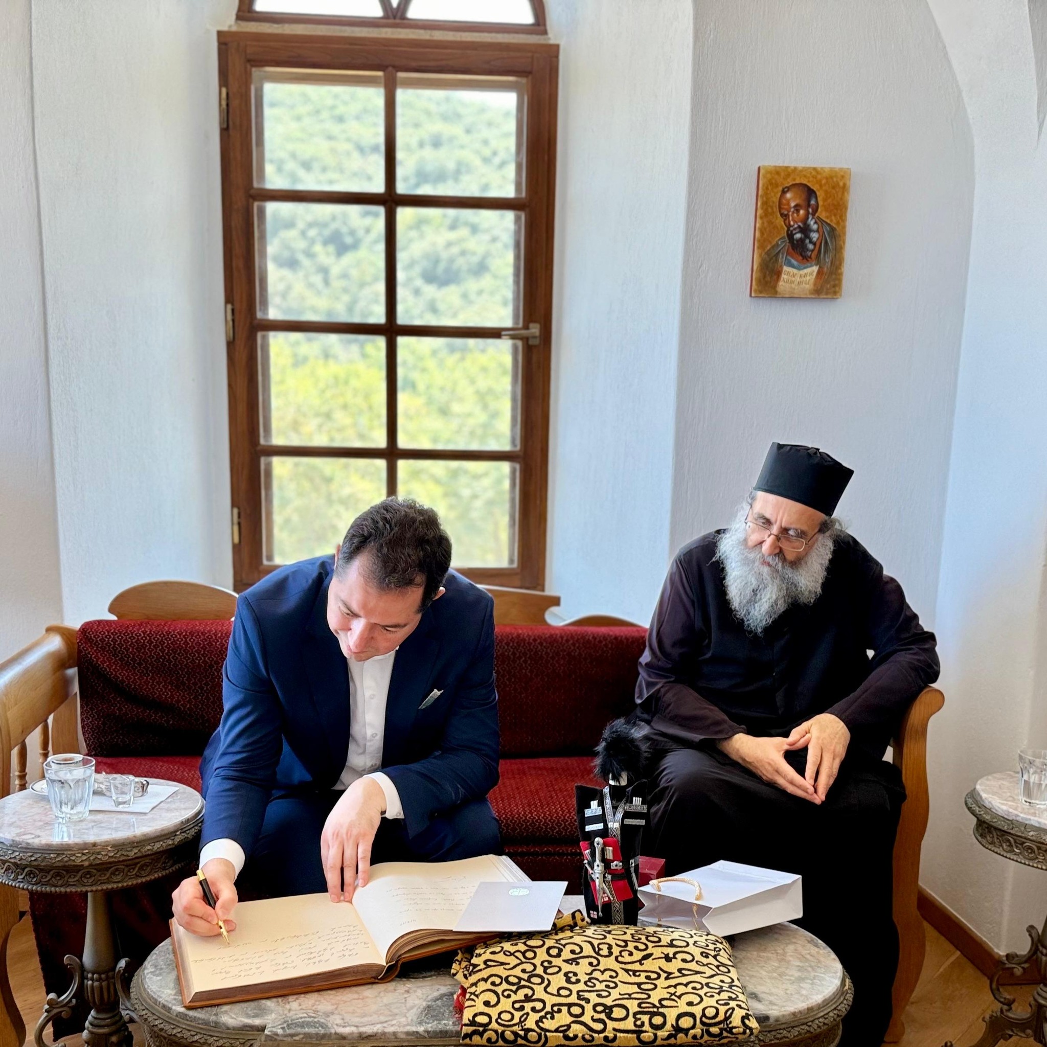„მადლობას ვუხდი არქიმანდრიტ ნათანაილს გულთბილი მასპინძლობისთვის. ჩემთვის უდიდესი პატივი და ბედნიერება იყო, მისი ინიციატივით ივერონის მონასტრის საპატიო სტუმრების წიგნში ჩანაწერის გაკეთება.