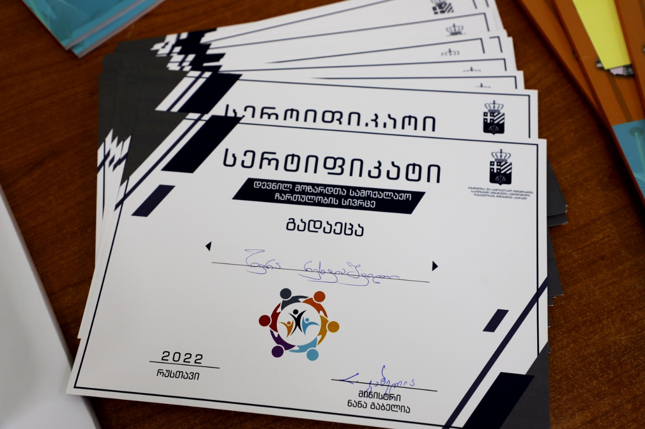 რუსლან აბაშიძემ პროექტის „დევნილ მოზარდთა სამოქალაქო ჩართულობის სივრცე“ მონაწილეებს სერტიფიკატები გადასცა