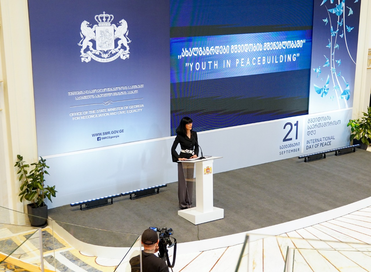 ღონისძიება მისასალმებელი სიტყვით გახსნა და დამსწრე საზოგადოებას სიტყვით მიმართა სახელმწიფო მინისტრმა თეა ახვლედიანმა, რომელმაც საქართველოსთვის მშვიდობის საერთაშორისო დღისა და მშვიდობის დამყარების მნიშვნელობაზე, განსაკუთრებით რეგიონში შექმნილი უსაფრთხოების უკიდურესი გამოწვევების ფონზე, კონფლიქტის მშვიდობიანი მოგვარებისკენ მიმართულ საქართველოს ხელისუფლების ძალისხმევაზე, ასევე შერიგებისა და ჩართულობის პოლიტიკის პრიორიტეტებსა და ამოცანებზე ისაუბრა. თეა ახვლედიანმა განსაკუთრებული ყურადღება გაამახვილა სამშვიდობო პროცესში ახალგაზრდების როლისა და ჩართულობის გაძლიერების საჭიროებაზე, რაც სახელმწიფო მინისტრის აპარატის საქმიანობის ერთ-ერთ გაცხადებულ პრიორიტეტულ მიმართულებას წარმოადგენს.