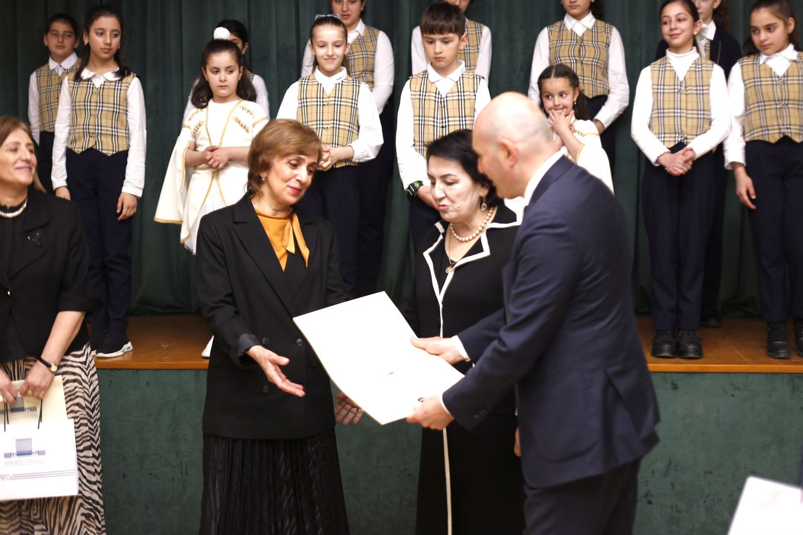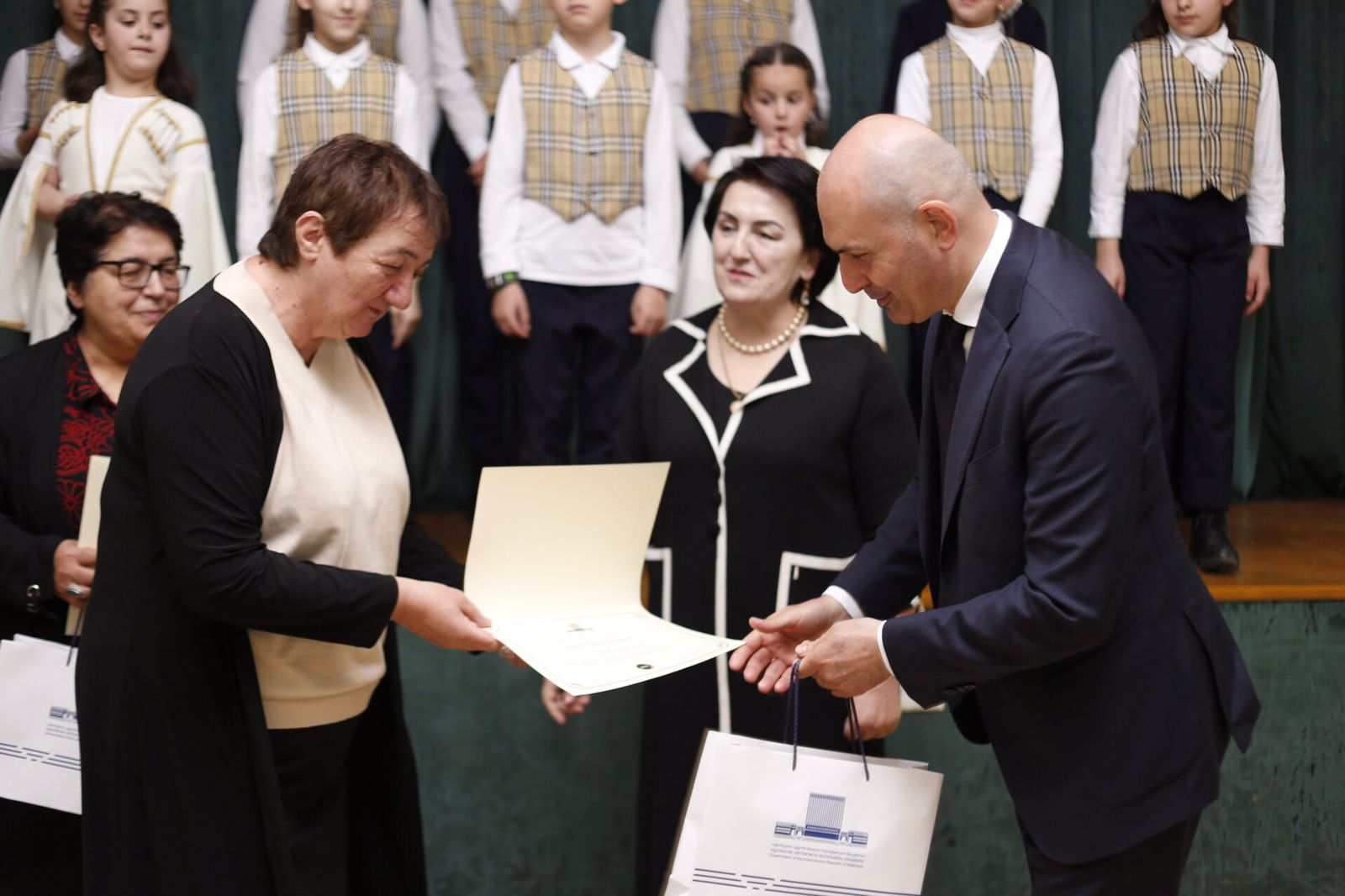 მთავრობის თავმჯდომარემ სკოლის დირექტორს და პედაგოგებს მადლობა გადაუხადა აფხაზური ენის დაცვის, განვითარების, პოპულარიზაციისა და შენარჩუნების საქმეში შეტანილი განსაკუთრებული წვლილისთვის და აფხაზეთის მთავრობის სიგელები გადასცა.
