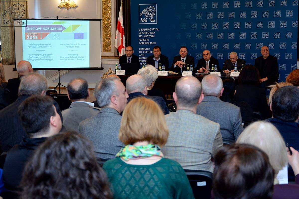 საქართველოს კულტურისა და ძეგლთა დაცვის სამინისტროში მიმდინარეობს კონფერენცია თემაზე „საქართველოს კულტურის სტრატეგია: ადამიანები. პროცესები. პრიორიტეტები“. კონფერენციას უძღვებიან საქართველოს კულტურისა და ძეგლთა დაცვის მინისტრი მიხეილ გიორგაძე და აფხაზეთის ა/რ მთავრობის თავმჯდომარე - ვახტანგ ყოლბაია, აფხაზეთის ა/რ უმაღლესი საბჭოს თავმჯდომარე - ელგუჯა გვაზავა, აფხაზეთის ა/რ განათლებისა და კულტურის მინისტრი - დიმიტრი ჯაიანი, სამხრეთ ოსეთის ადმინისტრაციის ხელმძღვანელი - დიმიტრი სანაკოევი. კონფერენციაში მონაწილეობენ არასამთავრობო ორგანიზაციები, შემოქმედებითი სექტორის წარმომადგენლები, საინიციატივო ჯგუფები და კულტურის სფეროთი დაინტერესებული პირები.
