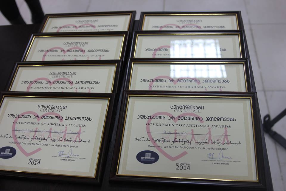 აქციის შემდეგ, მოძრაობაში „ვიზრუნოთ ერთმანეთზე" აქტიური ჩართულობისათვის აფხაზეთის ავტონომიური რესპუბლიკის მთავრობის თავმჯდომარის მოვალეობის შემსრულებელმა ვახტანგ ყოლბაიამ ყველა ორგანიზაცია და ინდივიდუალური მონაწილე დააჯილდოვა. კავკასიის ახალგაზრდულმა ალიანსმა კი პროექტში ჩართულ ყველა მოხალისეს სერთიფიკატები გადასცა.