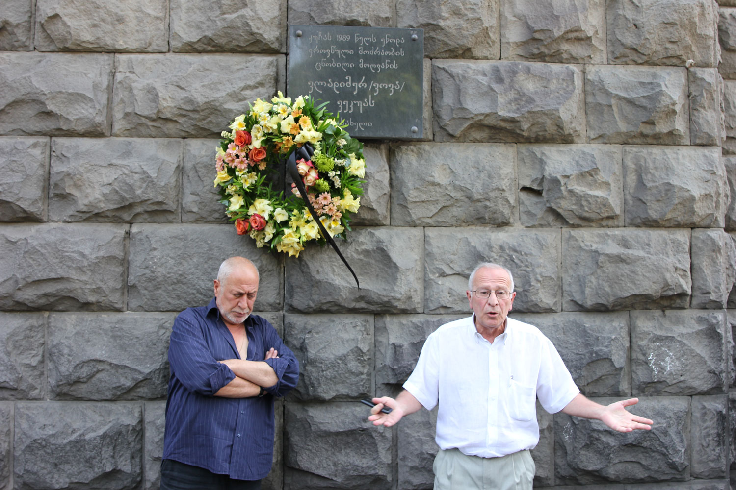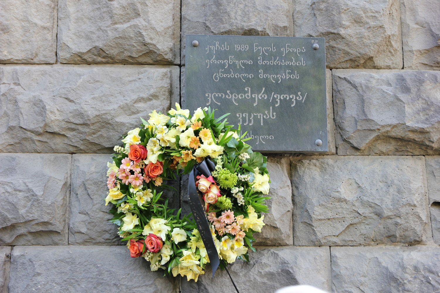 აფხაზეთის ხელისუფლების წარმომადგენლებმა და აფხაზეთიდან დევნილმა საზოგადოებამ, ვოვა ვეკუას მემორიალური დაფა გვირგვინით შეამკეს