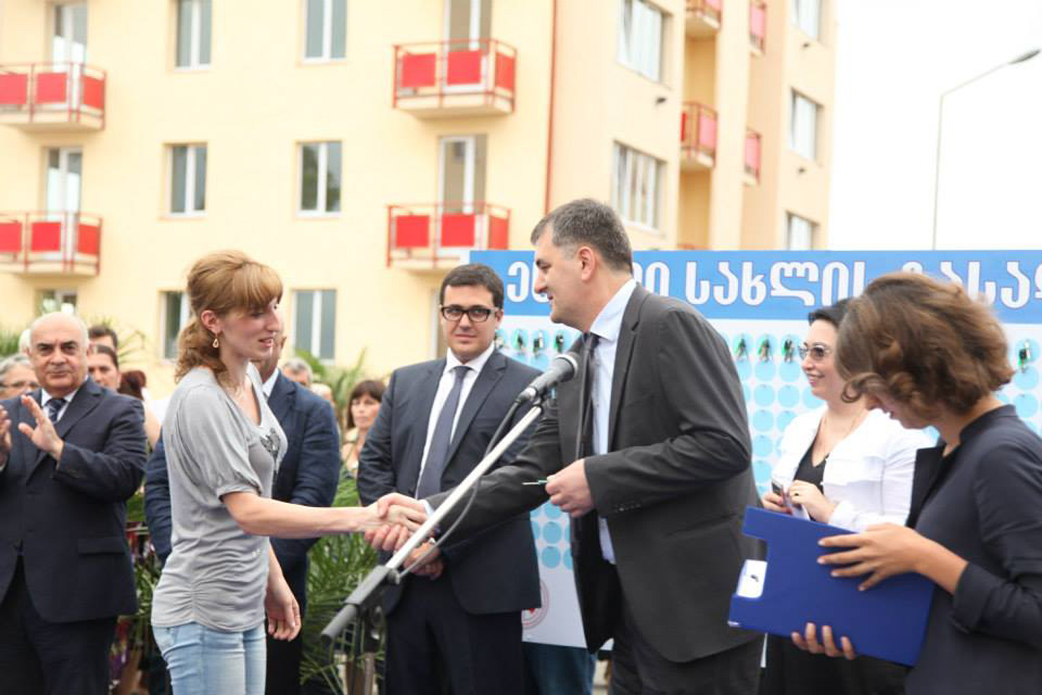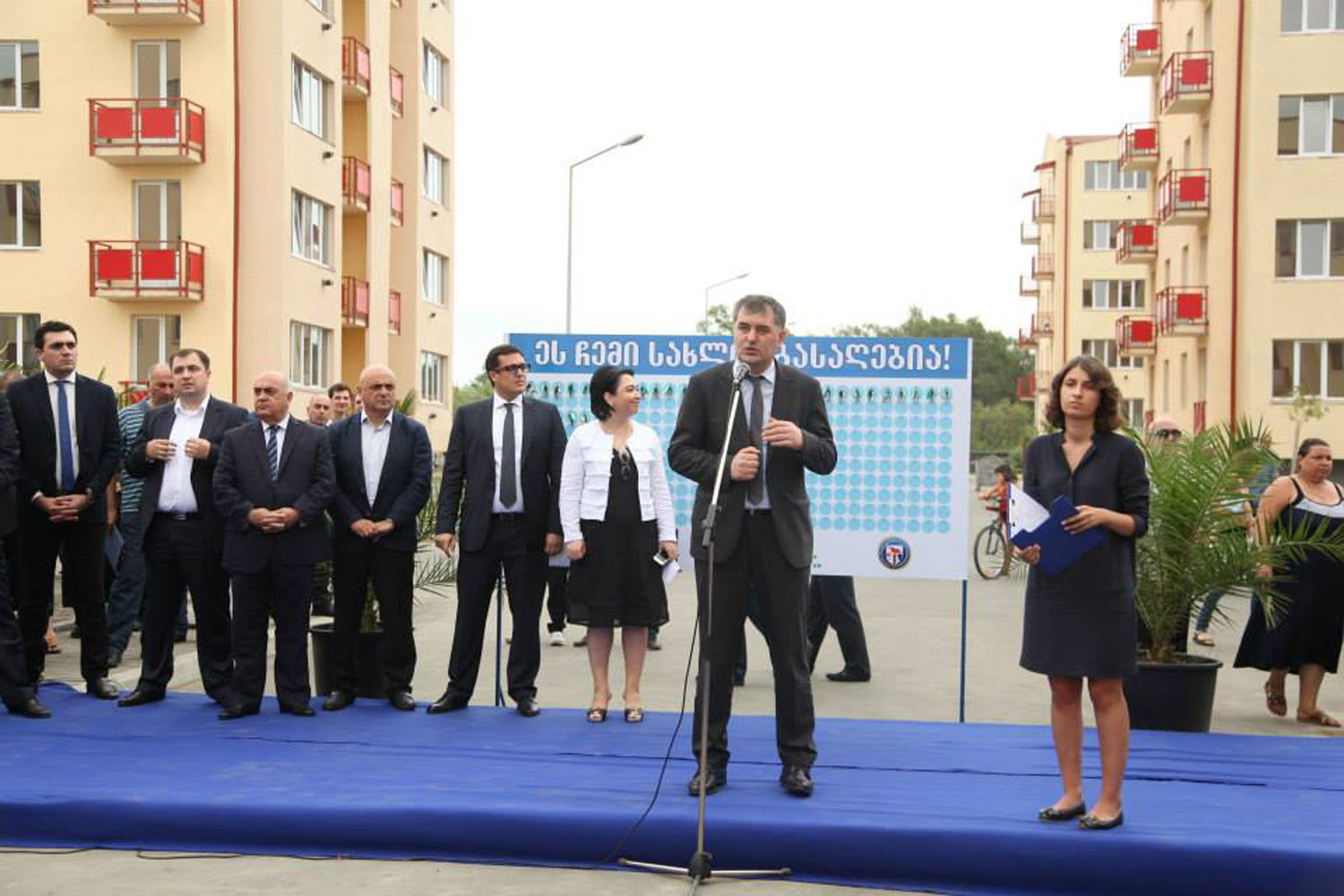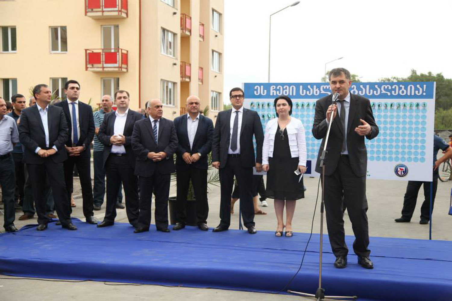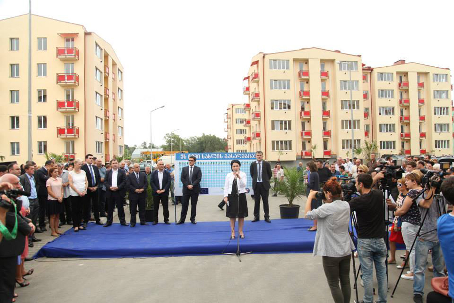 ბინების გადაცემის ცერემონიალს ასევე ესწრებოდა გაეროს ლტოლვილთა უმაღლესი კომისარიატის წარმომადგენელი სიმონე უოლკენი.