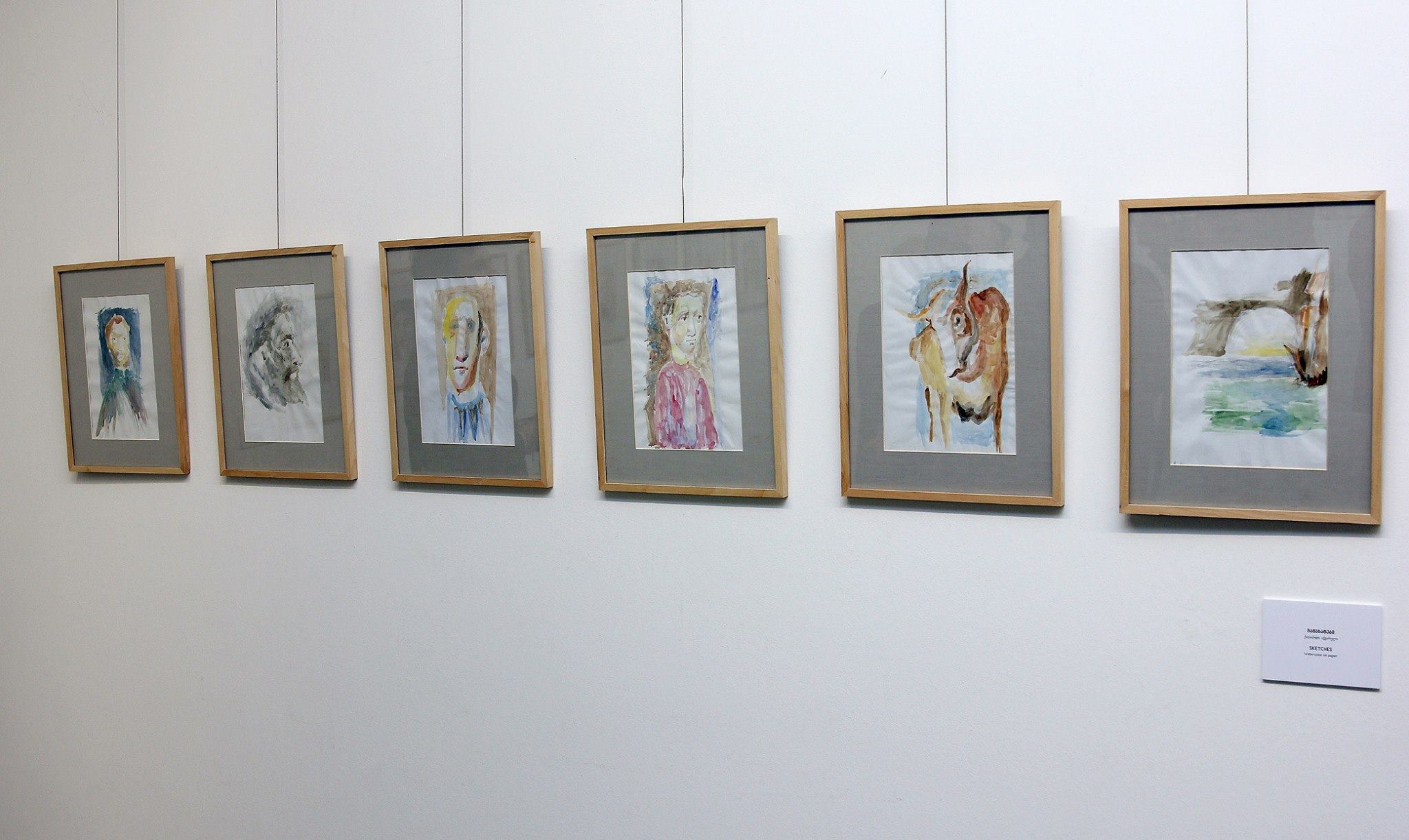 გამოფენაზე წარმოდგენილი ნამუშევრები 90-იან წლების მიწურულს მიეკუთვნება. წარმოდგენილია ტემპერის საღებავებით შესრულებული კომპოზიციები, ლიტერატურული პერსონაჟების ინტერპრეტაციების ამსახველი გრაფიკული სერიები, აკვარელით, ფანქრით და კალმით შესრულებული პორტრეტული ჩანახატები.