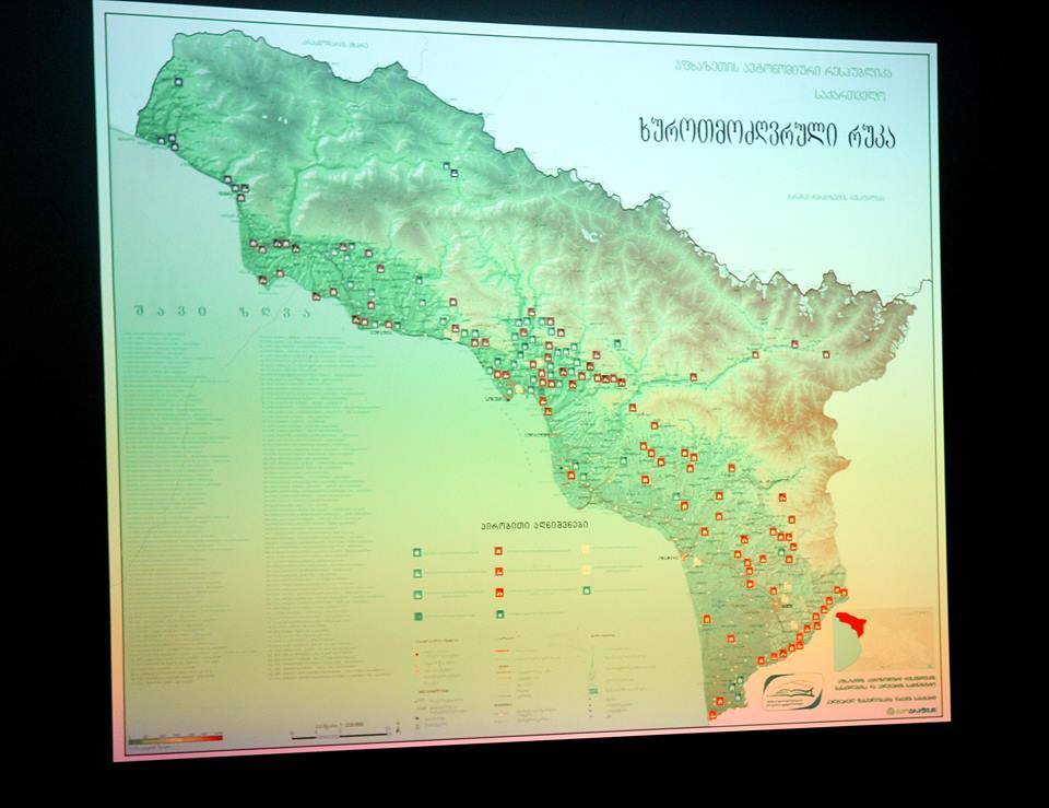აფხაზეთის ა/რ განათლებისა და კულტურის სამინისტროს კულტურულ ფასეულობათა დაცვის სამსახურის უფროსმა ირაკლი გელენავამ დამსწრეთ წარუდგინა აფხაზეთის ხუროთმოძღვრული რუკის ელექტრონული ვერსია და სთხოვა, რუკის სრულყოფის მიზნით გამოეთქვათ თავიანთი შენიშვნები და წინადადებები.რუკის წარმოდგენილ ვარიანტთან დაკავშირებით მოსაზრებები და შენიშვნები გამოთქვეს: აფხაზეთის ა/რ უმაღლესი საბჭოს დეპუტატებმა - ჯემალ გამახარიამ, ნუგზარ მგალობლიშვილმა და აკაკი გასვიანმა, სოხუმის სახელმწიფო უნივერსიტეტის პროფესორმა რეზო ხვისტანმა, აფხაზეთის ა/რ მთავრობის წარმომადგენელმა შერმადინ შარიამ და სხვ.