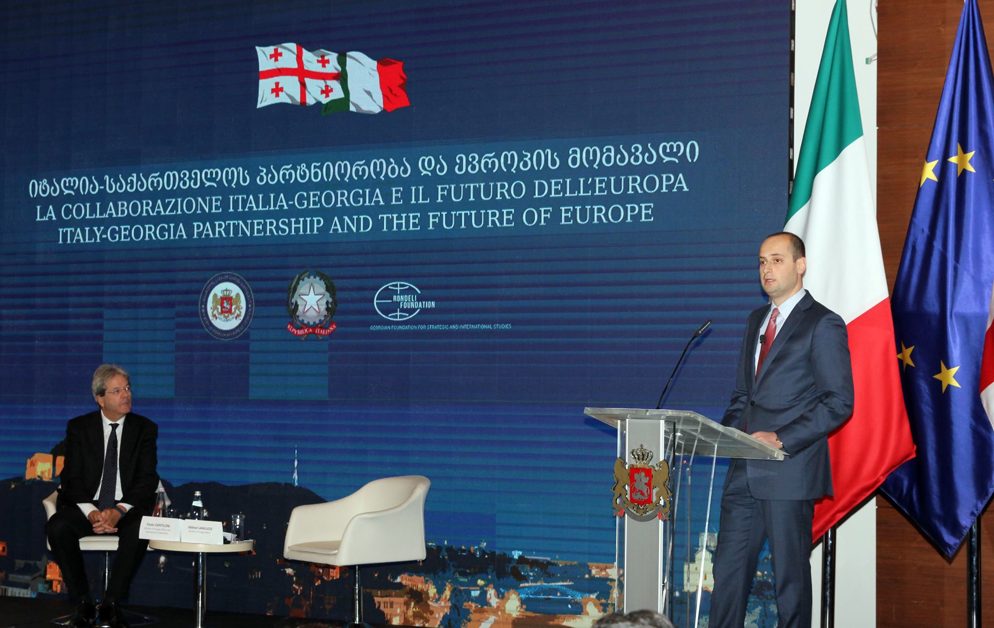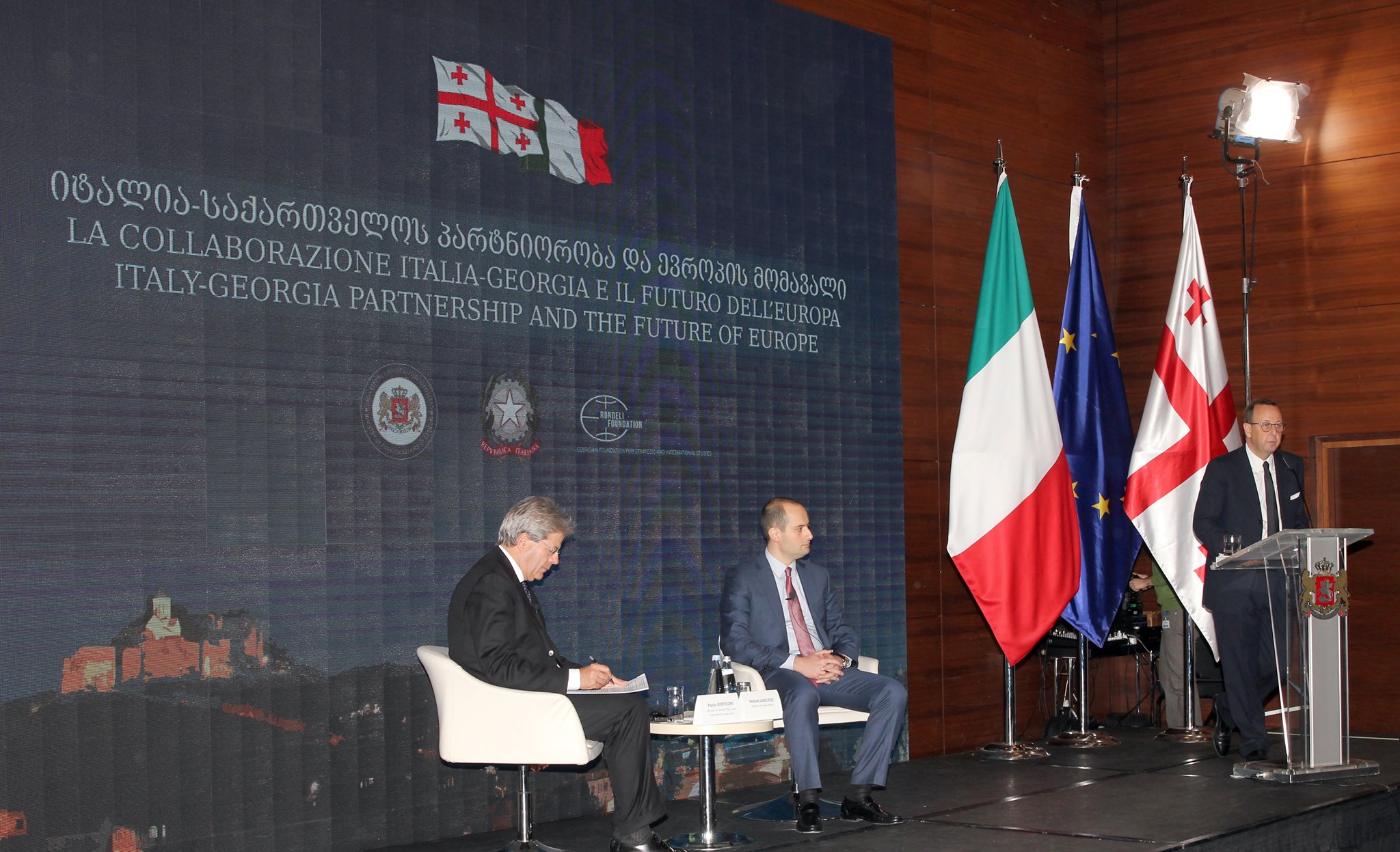 იტალიის რესპუბლიკის საგარეო საქმეთა მინისტრის პაოლო ჯენტილინოს ოფიციალური ვიზიტის ფარგლებში საქართველოს საგარეო საქმეთა სამინისტოს, საქართველოში იტალიის საელჩოსა და საქართველოს სტრატეგიისა და საერთაშორისო ურთიერთობების კვლევის ფონდის ერთობლივი ორგანიზებით ორი ქვეყნის საგარეო საქმეთა მინისტრის საჯარო გამოსვლა თემაზე - „იტალია-საქართველოს ურთიერთობები და ევროპის მომავალი" გაიმართა.