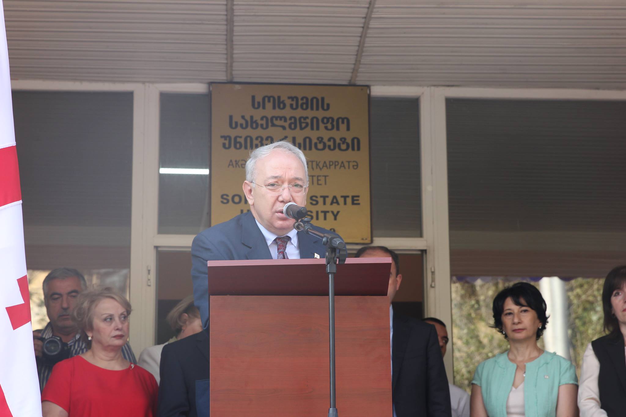 უნივერსიტეტის აკადემიურ პერსონალსა და სტუდენტებს ახალი სასწავლო წლის დაწყება მიულოცეს და სიტყვით მიმართეს სოხუმის სახელმწიფო უნივერსიტეტის რექტორმა ზურაბ ხონელიძემ, საქართველოს განათლებისა და მეცნიერების მინისტრმა ალექსანდრე ჯეჯელავამ, აფხაზეთის ავტონომიური რესპუბლიკის მთავრობის თავმჯდომარის მოვალეობის შემსრულებელმა ვახტანგ ყოლბაიამ, აფხაზეთის ავტონომიური რესპუბლიკის მთავრობის თავმჯდომარე ელგუჯა (გია) გვაზავამ, ქალაქ თბილისის მერმა დავით ნარმანიამ და აფხაზეთის განათლებისა და კულტურის მინისტრმა დიმიტრი ჯაიანმა.