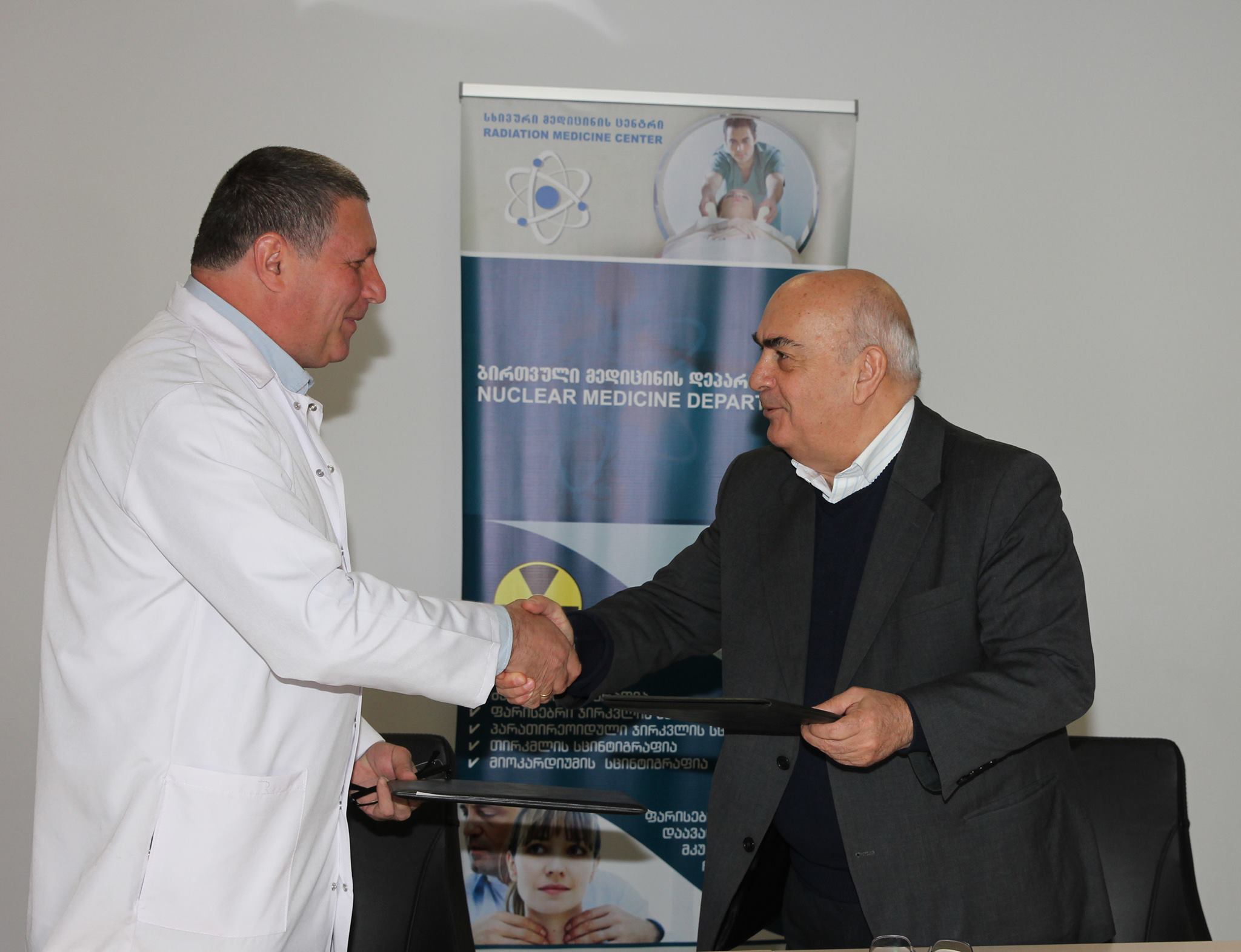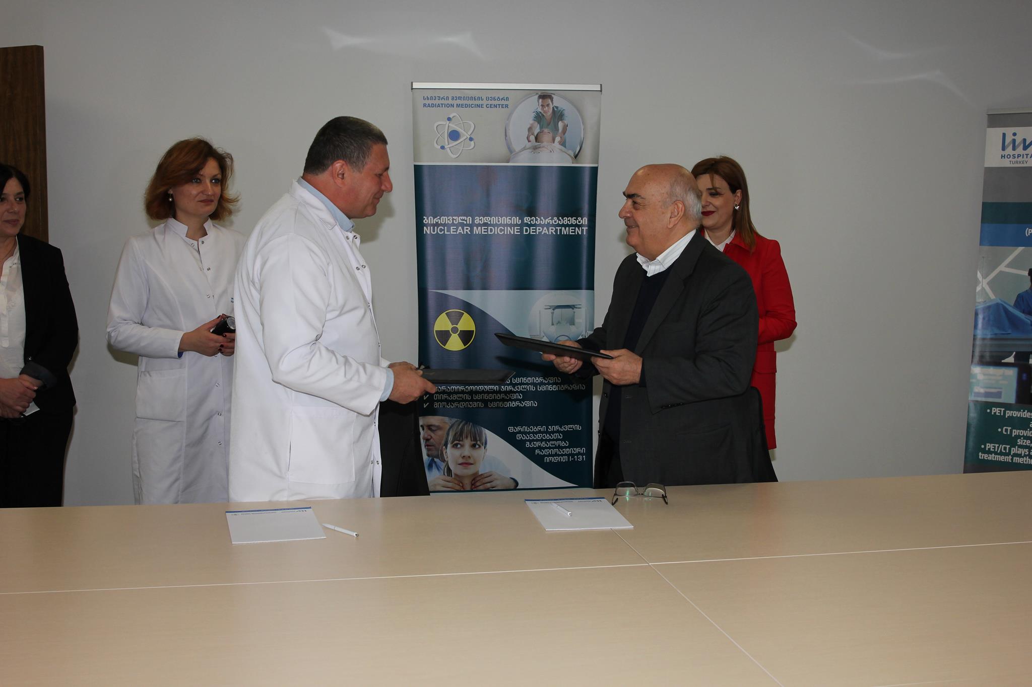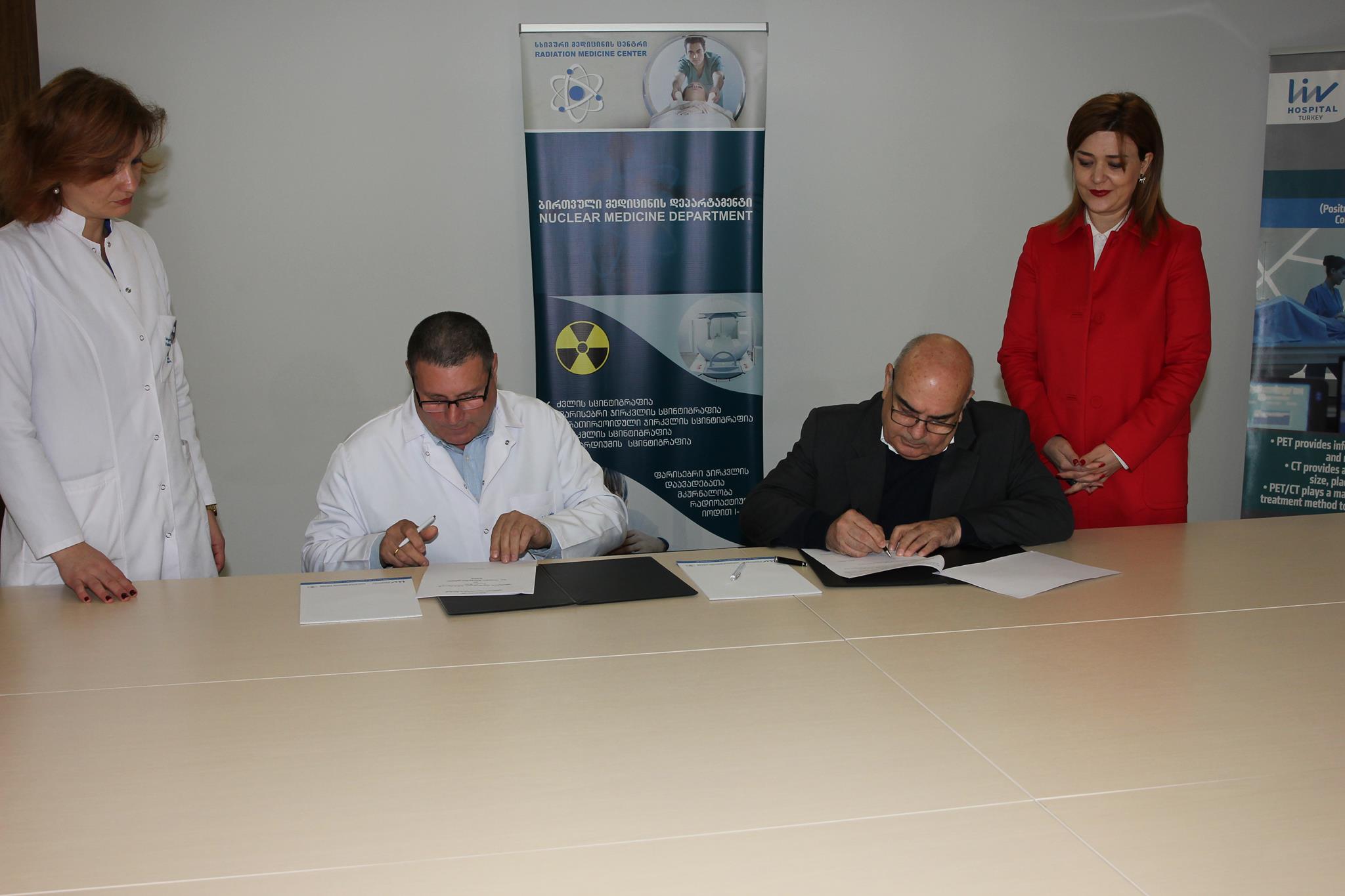 მემორანდუმს ხელი მოაწერეს აფხაზეთის ავტონომიური რესპუბლიკის მთავრობის თავმჯდომარის მოვალეობის შემსრულებელმა ვახტანგ ყოლბაიამ და შპს „სხივური მედიცინის ცენტრის" დირექტორმა ბესიკ სურგულაძემ.