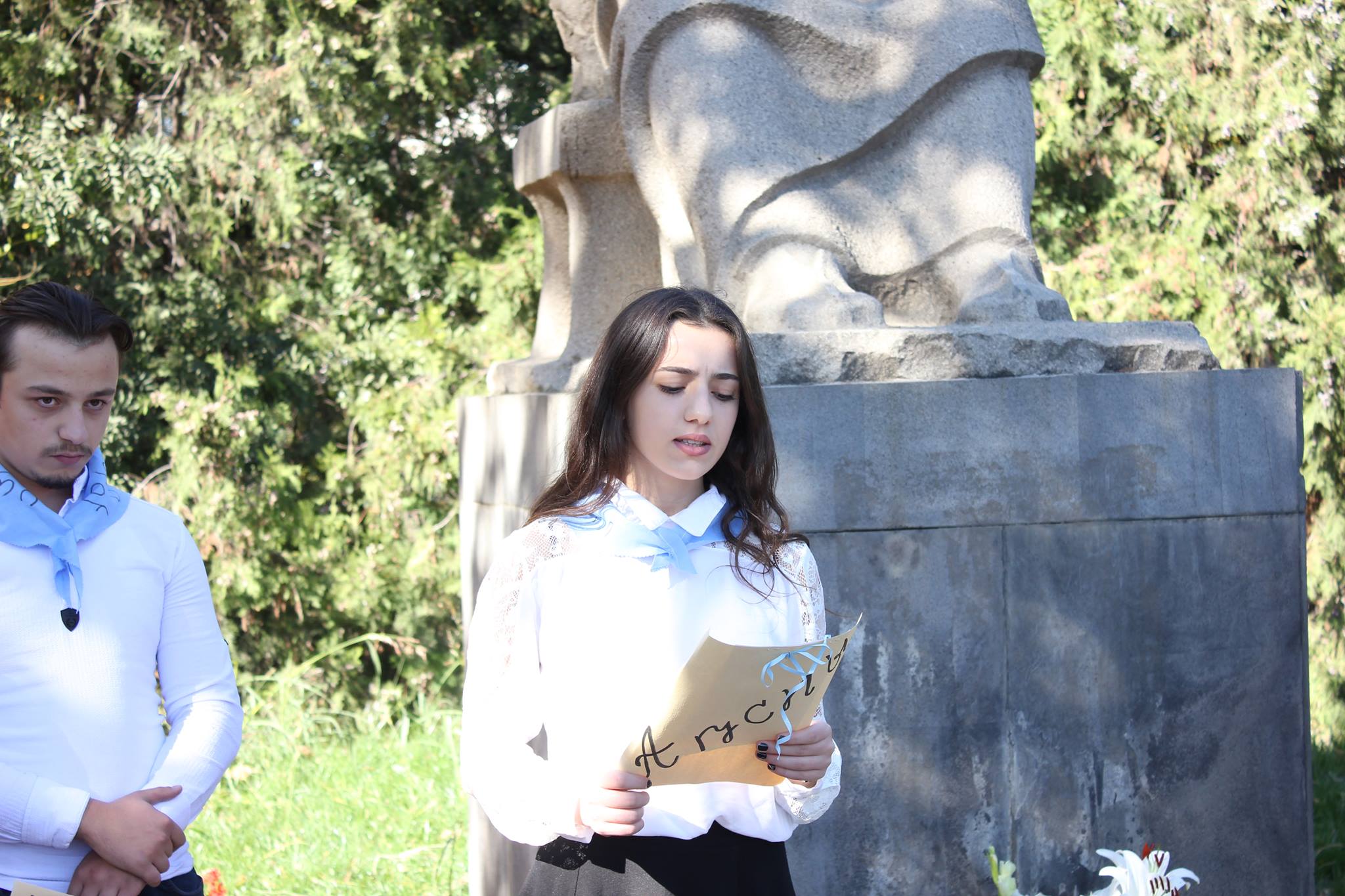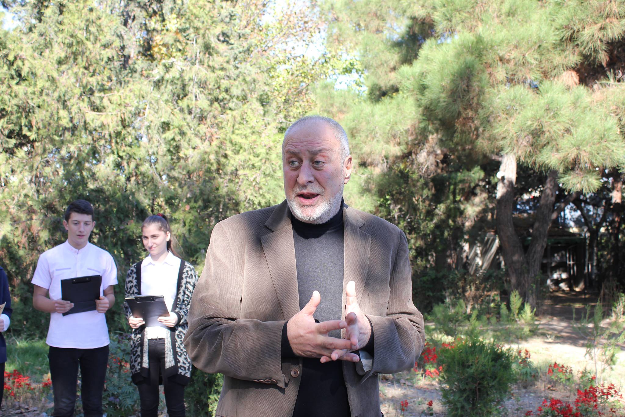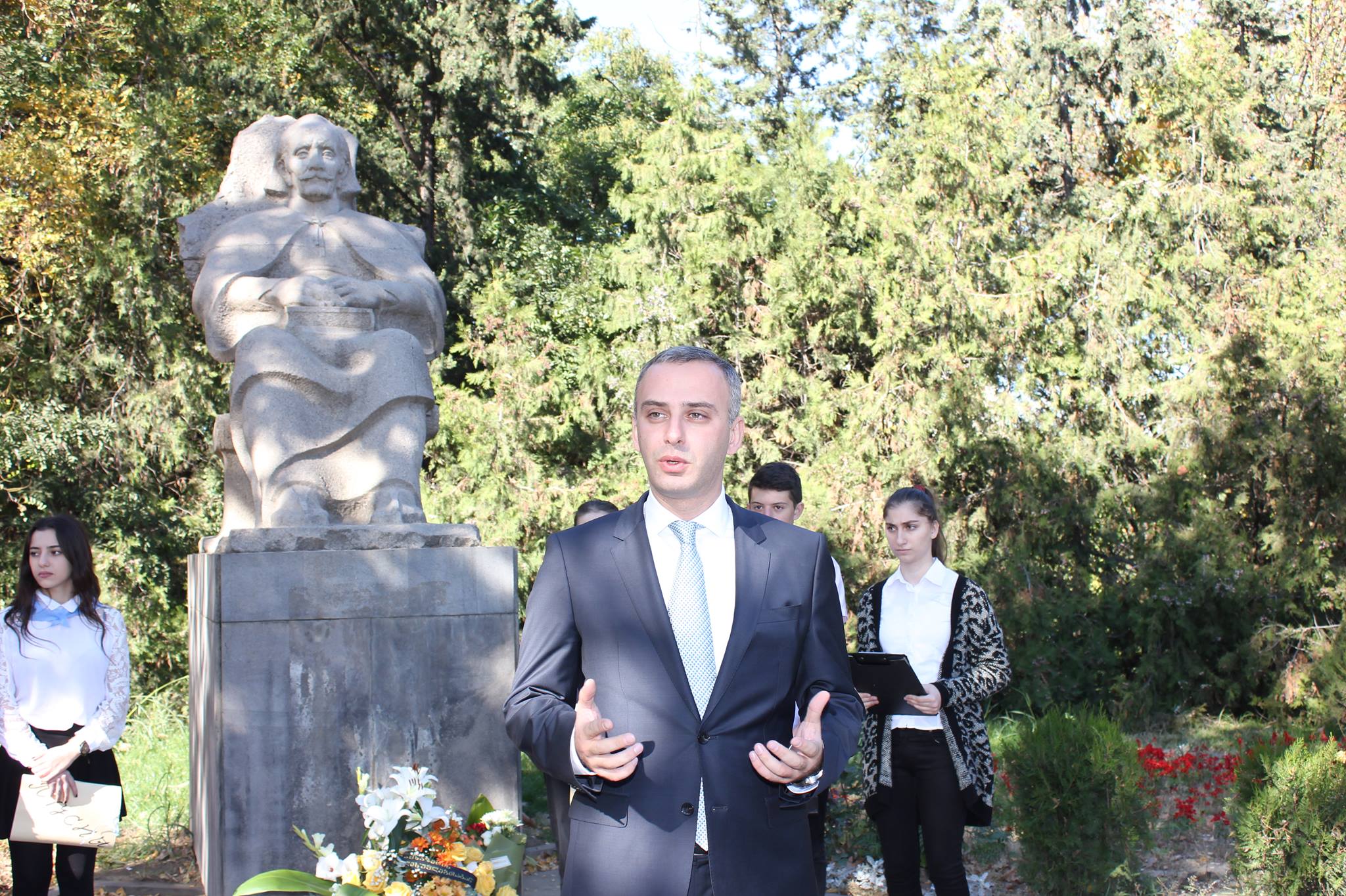დიმიტრი გულიას ძეგლთან იმყოფებოდნენ აფხაზეთის საჯარო სკოლის მოსწავლეები, რომლებმაც ლექსები აფხაზურ ენაზე წაიკითხეს.