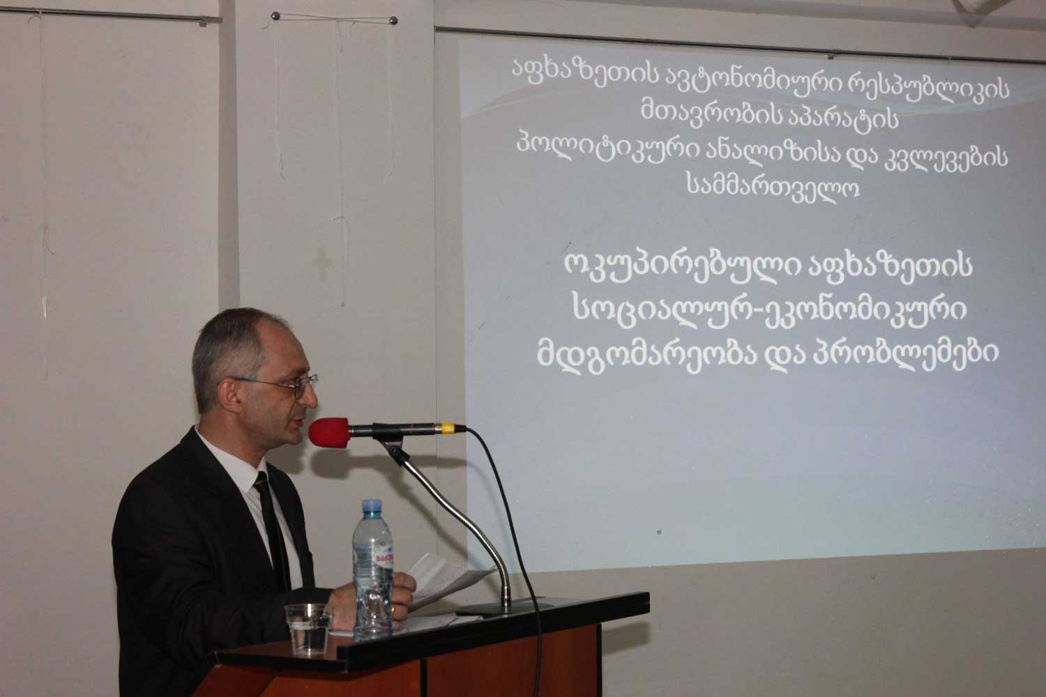 აფხაზეთის ავტონომიური რესპუბლიკის მთავრობის აპარატის პოლიტიკური ანალიზისა და კვლევების სამმართველოს ორგანიზებით კონფერენცია „ოკუპირებული აფხაზეთის სოციალურ-ეკონომიკური მდგომარეობა და პრობლემები" გაიმართა.