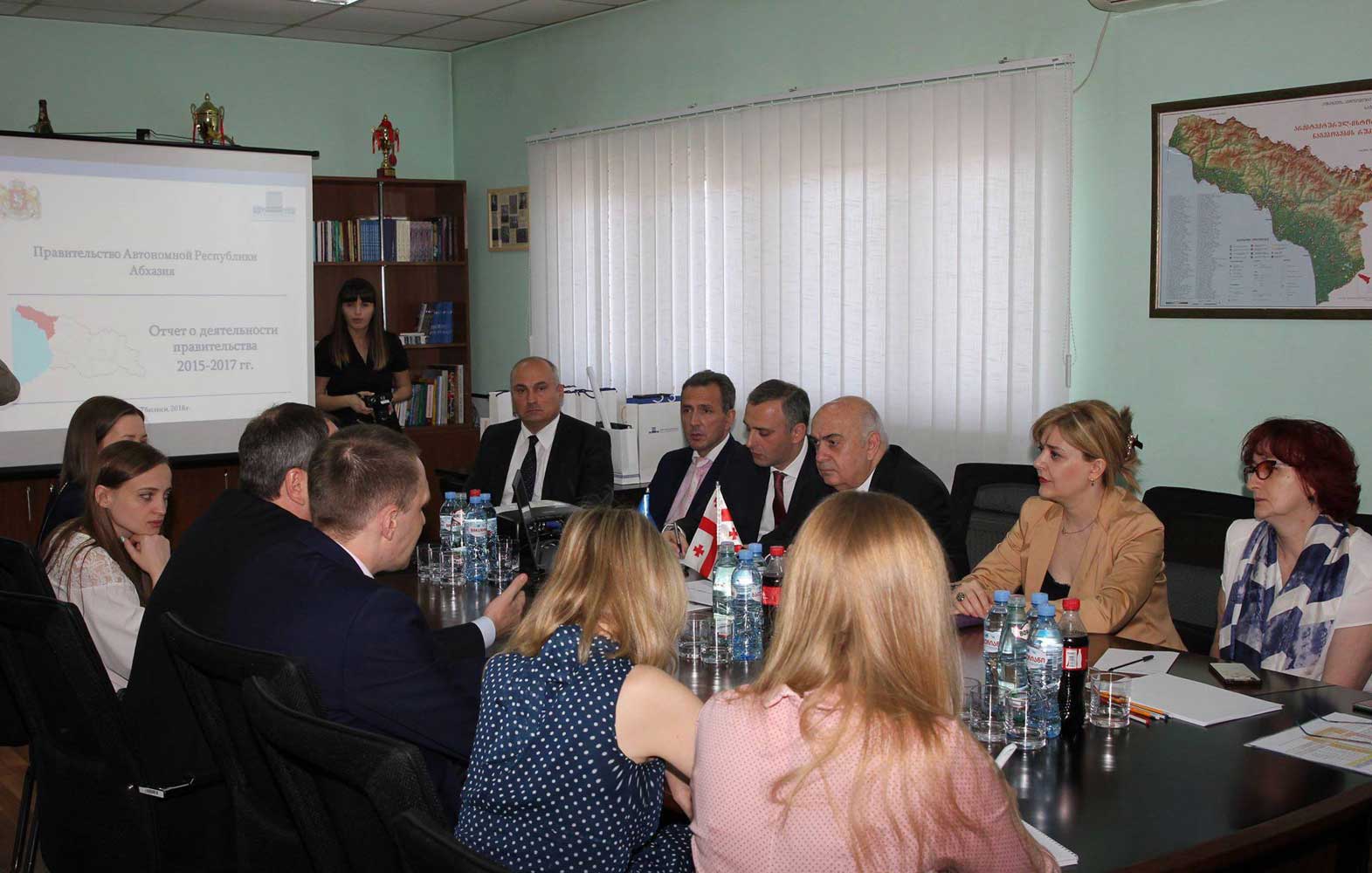 ვახტანგ ყოლბაიამ მოწვეულ სტუმრებს გააცნო ის პროექტები და ღონისძიებები რომელსაც აფხაზეთის ავტონომიური რესპუბლიკის ხელისუფლება ოკუპირებულ ტერიტორიებთან და იძულებით გადაადგილებულ პირებთან მიმართებაში ახორციელებს.