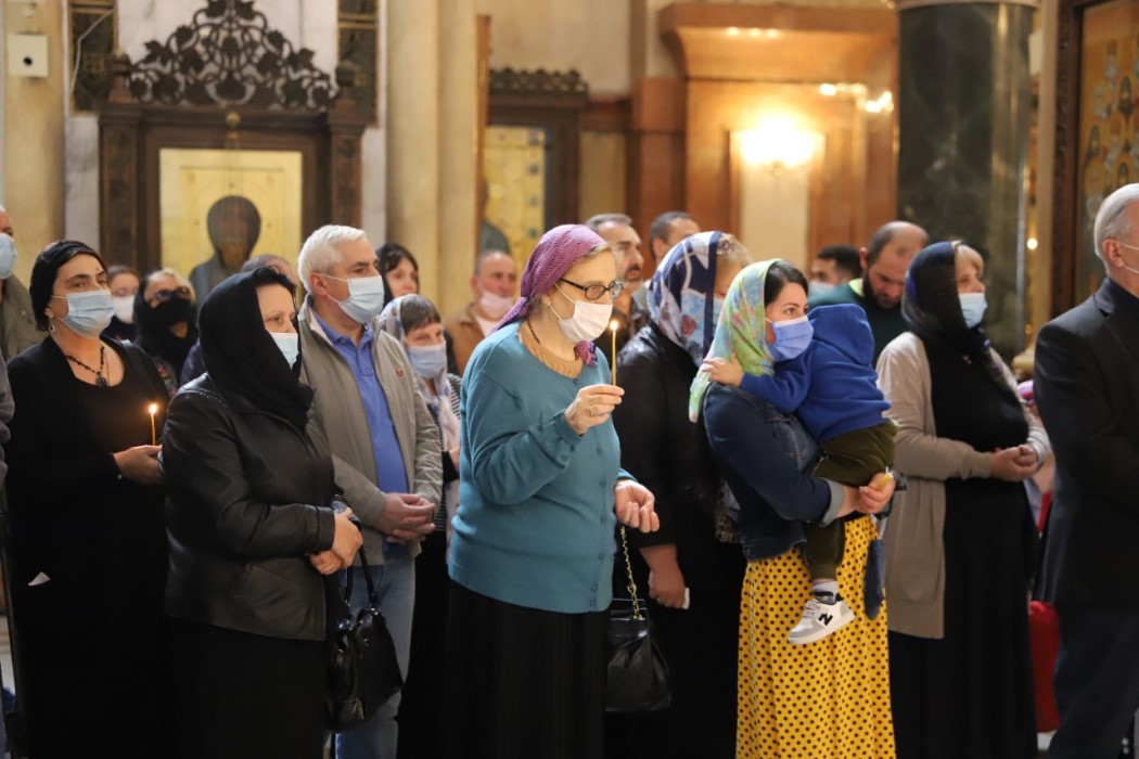 სამების ტაძარში აფხაზეთის ავტონომიური რესპუბლიკის მთავრობის თავმჯდომარე რუსლან აბაშიძე, აფხაზეთის მთავრობის წევრები და დევნილი საზოგადოება იმყოფებოდნენ.