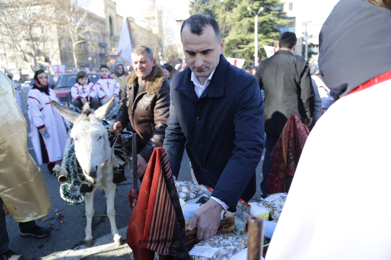 აფხაზეთის ავტონომიური რესპუბლიკის განათლებისა და კულტურის მინისტრმა გიორგი ძაძამიამ, აფხაზეთის მთავრობის წევრებთან ერთად, ალილოს სადღესასწაულო მსვლელობის მონაწილეებს საშობაო ნობათები გადასცა.