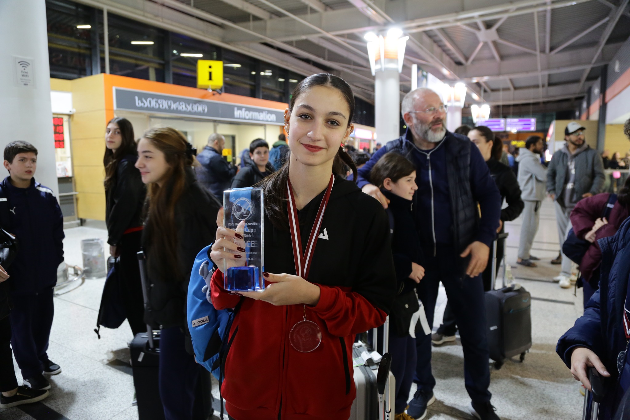ბექა ღვაჩლიანი თბილისის საერთაშორისო აეროპორტში, მაგიდის ჩოგბურთის საერთაშორისო ტურნირის გამარჯვებულებს დახვდა
