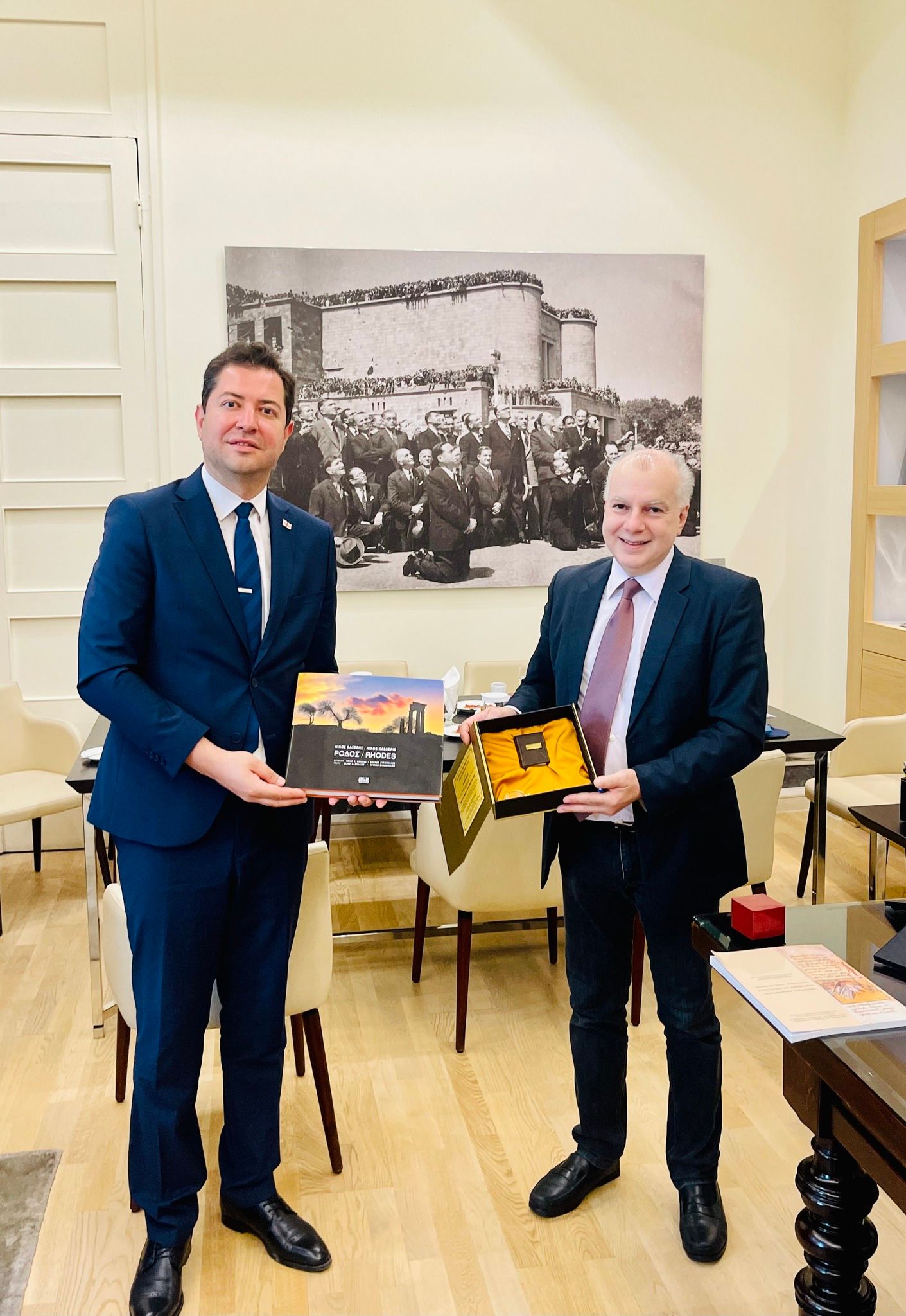 საბერძნეთში სამუშაო ვიზიტის ფარგლებში, აფხაზეთის ავტონომიური რესპუბლიკის იძულებით გადაადგილებულ პირთა მინისტრი - დავით ფაცაცია და აფხაზეთის ავტონომიური რესპუბლიკის მთავრობის თავმჯდომარის მოადგილე - ანზორ მარგიანი საბერძნეთის ქალაქ როდოსის მერს - ანტონის კამბურაკისს შეხვდნენ.