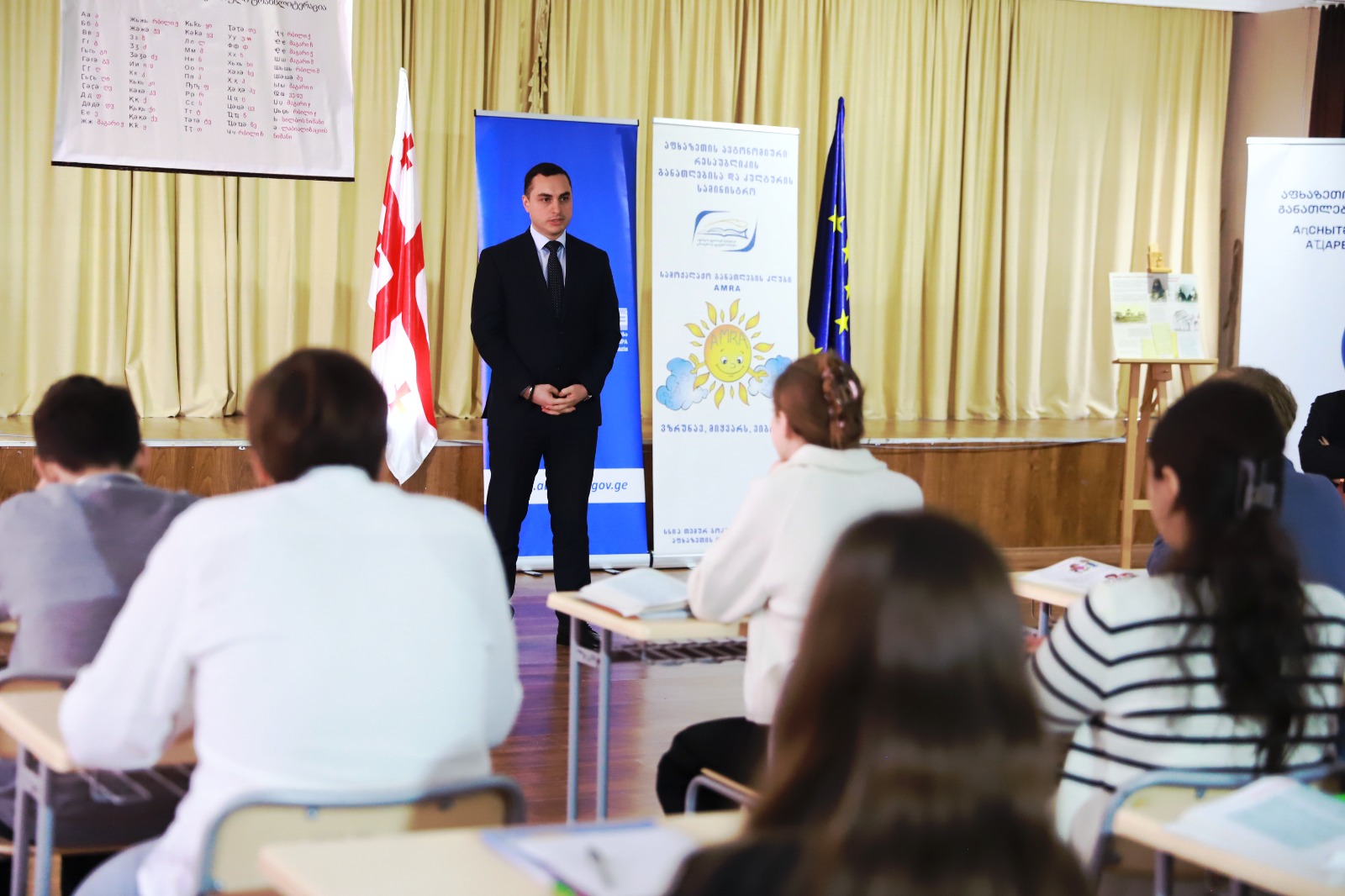 აფხაზეთის ავტონომიური რესპუბლიკის მთავრობის თავმჯდომარე გიორგი ჯინჭარაძე, აფხაზეთის განათლებისა და კულტურის მინისტრთან ერთად, აფხაზური ენის დღესთან დაკავშირებით სენაკში, თემურ ბოკუჩავას სახელობის აფხაზეთის №7 საჯარო სკოლაში აფხაზური ენის ინტეგრირებულ გაკვეთილს დაესწრო.