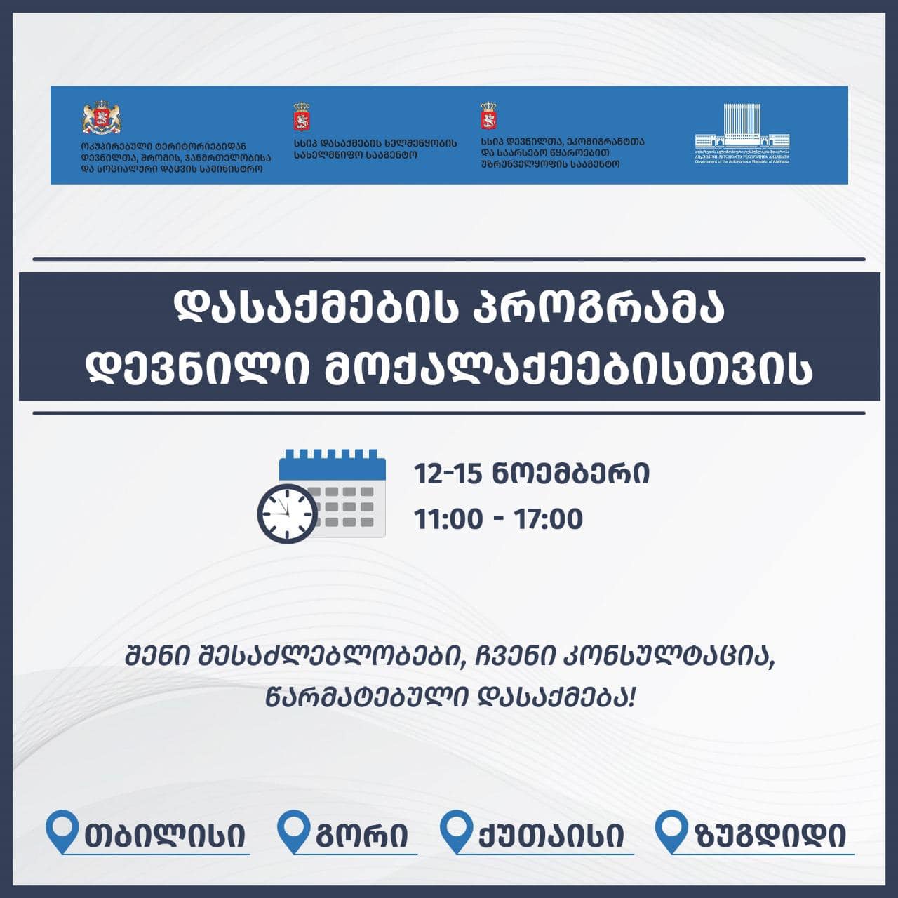 დასაქმების ხელშეწყობის სახელმწიფო სააგენტოს ორგანიზებით, იძულებით გადაადგილებული პირებისთვის დასაქმებაში ხელშეწყობის პროექტის განხორციელება დაიწყო.