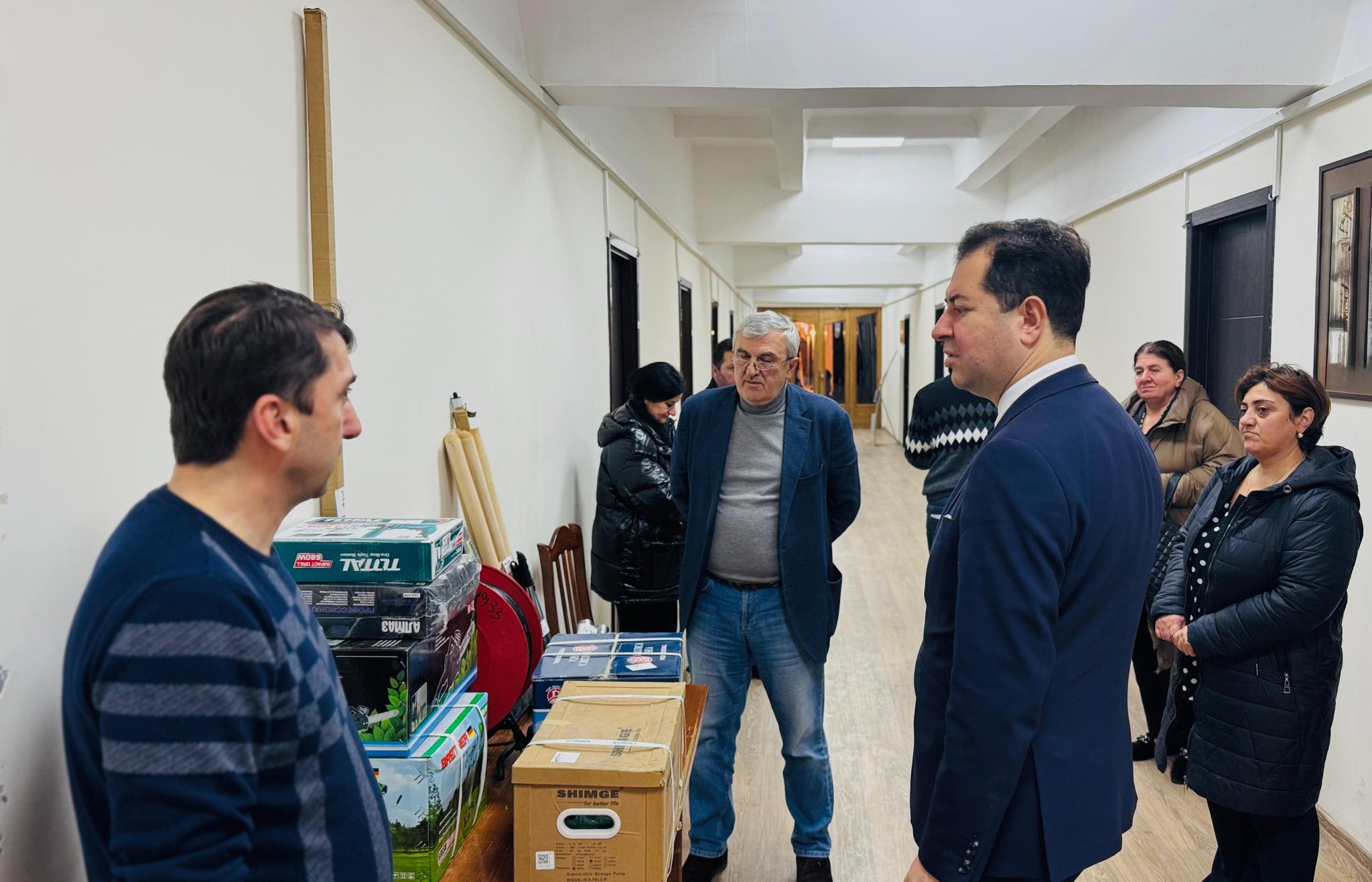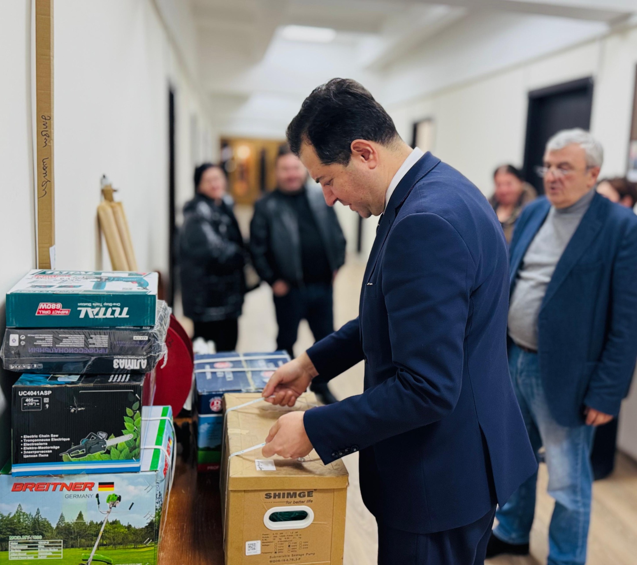სხვადასხვა სახის სამუშაოებისთვის საჭირო ტექნიკური ინვენტარი თბილისში, დირსის კომპლექსის მე-13 კორპუსში და სამგორის რაიონში, ვიქტორ კუპრაძის ქუჩაზე მდებარე დევნილთა განსახლების ადგილებში მცხოვრებმა დევნილებმა მიიღეს.