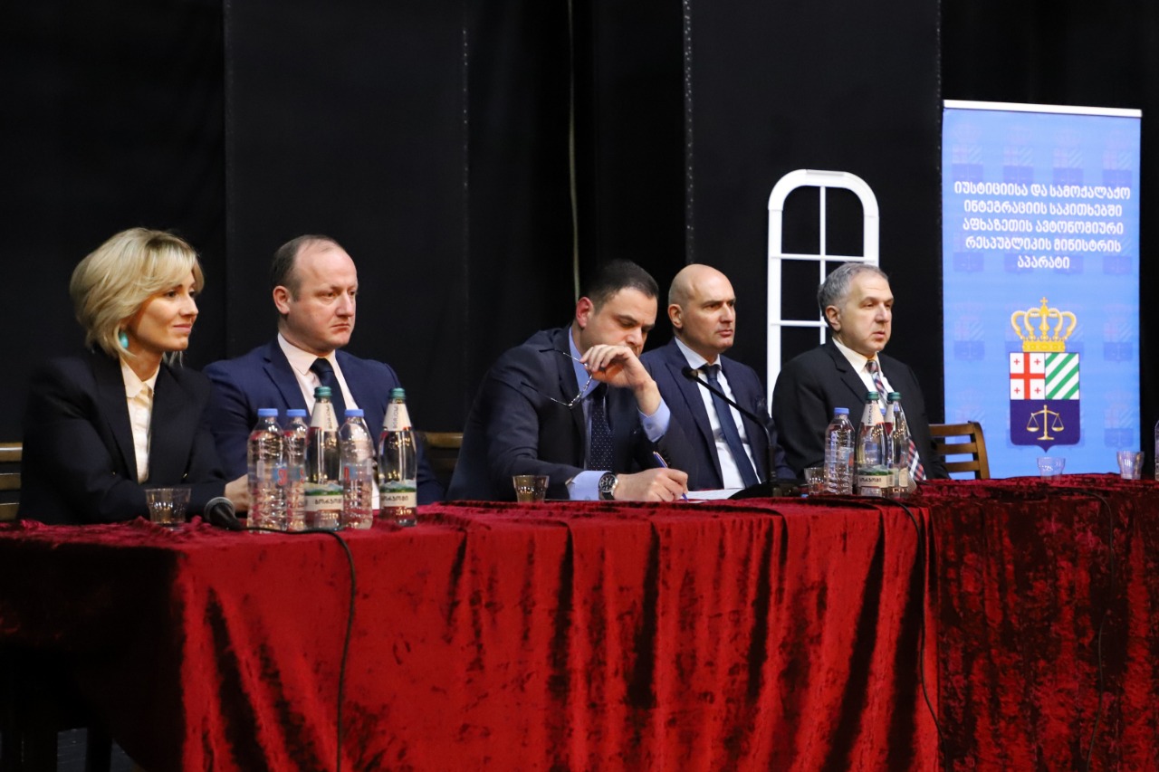 აფხაზეთის მთავრობის თავმჯდომარე რუსლან აბაშიძე, იუსტიციისა და სამოქალაქო ინტეგრაციის საკითხებში აფხაზეთის მინისტრი ნანა გაბელია და საქართველოს საგარეო საქმეთა მინისტრის მოადგილე თეიმურაზ ჯანჯალია ევროინტეგრაციის საკითხებით დაინტერესებულ სტუდენტებს შეხვდნენ.