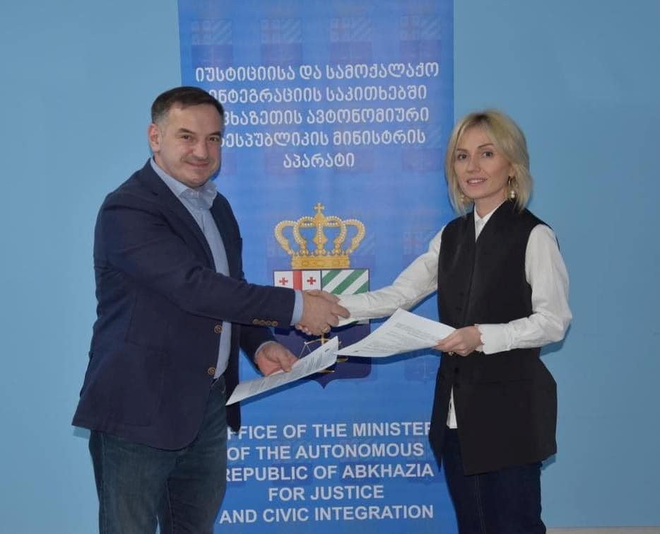 შესაბამის დოკუმენტს ხელი იუსტიციისა და სამოქალაქო ინტეგრაციის საკითხებში აფხაზეთის მინისტრმა ნანა გაბელიამ და ცენტრის აღმასრულებელმა დირექტორმა ნაპოლეონ მილორავამ მოაწერეს.