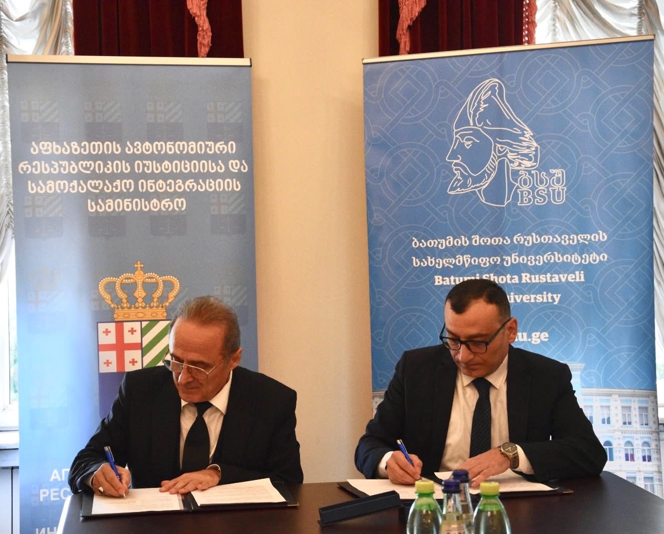 მემორანდუმს ხელი აფხაზეთის ავტონომიური რესპუბლიკის იუსტიციისა და სამოქალაქო ინტეგრაციის მინისტრმა გიორგი ძიგუამ და ბათუმის შოთა რუსთაველის სახელმწიფო უნივერსიტეტის რექტორმა ტიტე აროშიძემ მოაწერეს.