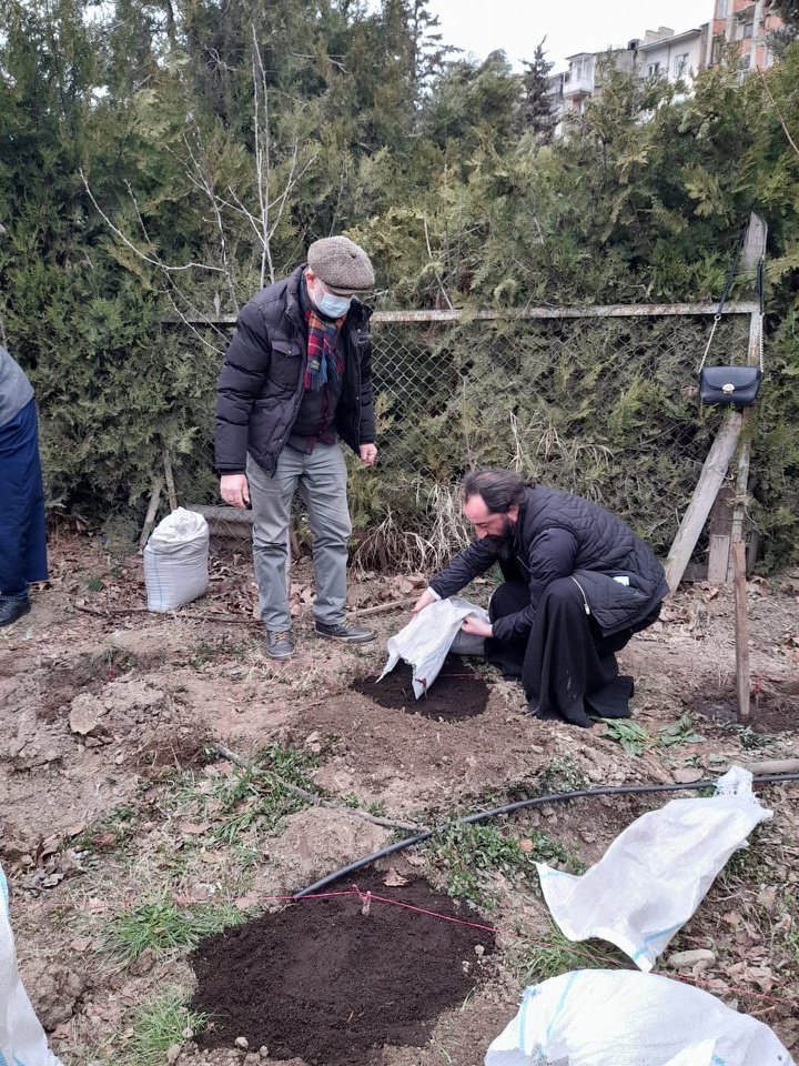 ეკლესიის ეზოში ვაზის იშვიათი ჯიშები იუსტიციისა და სამოქალაქო ინტეგრაციის საკითხებში აფხაზეთის ავტონომიური რესპუბლიკის მინისტრმა - დავით ფაცაციამ, მინისტრის პირველმა მოადგილემ - ბელა კოპალიანმა, აფხაზეთის სულიერების ცენტრის დირექტორმა - ბესიკ სილაგაძემ, ეკლესიის მოძღვარმა - მამა ლევანმა, მევენახე-მეღვინემ - სერგო ჭანტურიამ, სასულიერო პირებმა, აფხაზეთის ავტონომიური რესპუბლიკის მთავრობის წარმომადგენლებმა და იუსტიციისა და სამოქალაქო ინტეგრაციის საკითხებში აფხაზეთის ავტონომიური რესპუბლიკის მინისტრის აპარატის თანამშრომლებმა დარგეს.