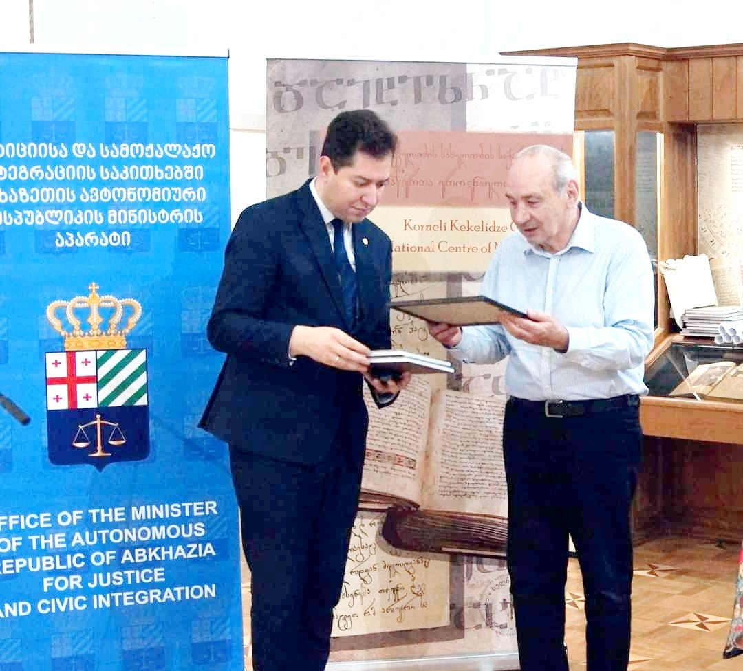 იუსტიციისა და სამოქალაქო ინტეგრაციის საკითხებში აფხაზეთის ავტონომიური რესპუბლიკის მინისტრის აპარატსა და ხელნაწერთა ეროვნულ ცენტრს შორის ურთიერთანაშრომლობის მემორანდუმი გაფორმდა, რომელიც ითვალისწინებს აფხაზეთის მოსახლეობის მეტი ჩართულობის უზრუნველყოფის მიზნით სხვადასხვა საგანმანათლებლო და სემცნიერო პროექტების ერთობლივად განხორციელებას.